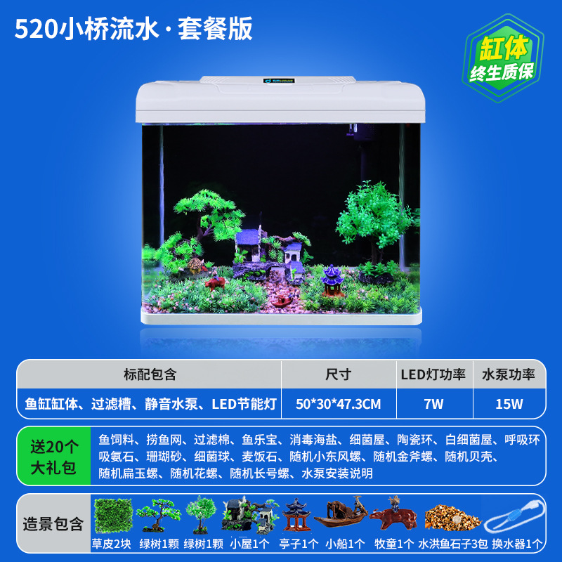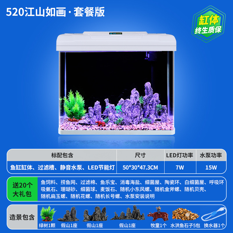 • **HD 유리 520 Jiangshan/플러스 20개 선물 패키지★워터 펌프 + 조명 + 산소 + 여과 시스템 포함★**