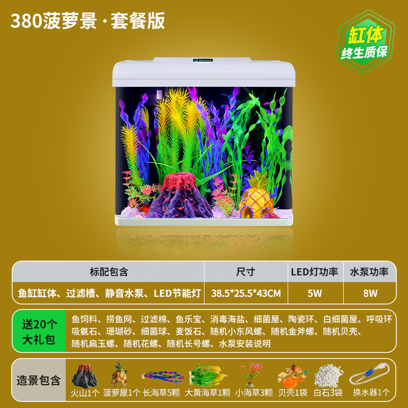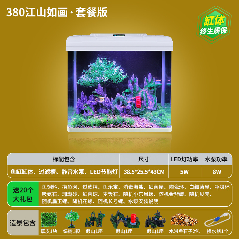 • **HD 유리 380 Jiangshan/플러스 20개 선물 패키지★워터 펌프 + 조명 + 산소 + 여과 시스템 포함★**