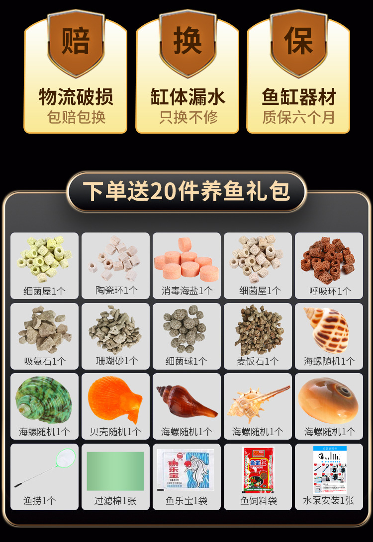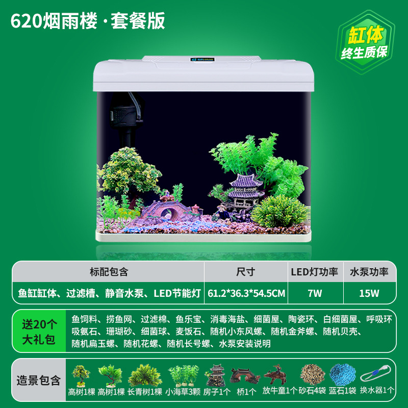 • **HD 유리 600 Jiangnan/플러스 20개 선물 팩★워터 펌프 + 조명 + 산소 + 여과 시스템 포함★**