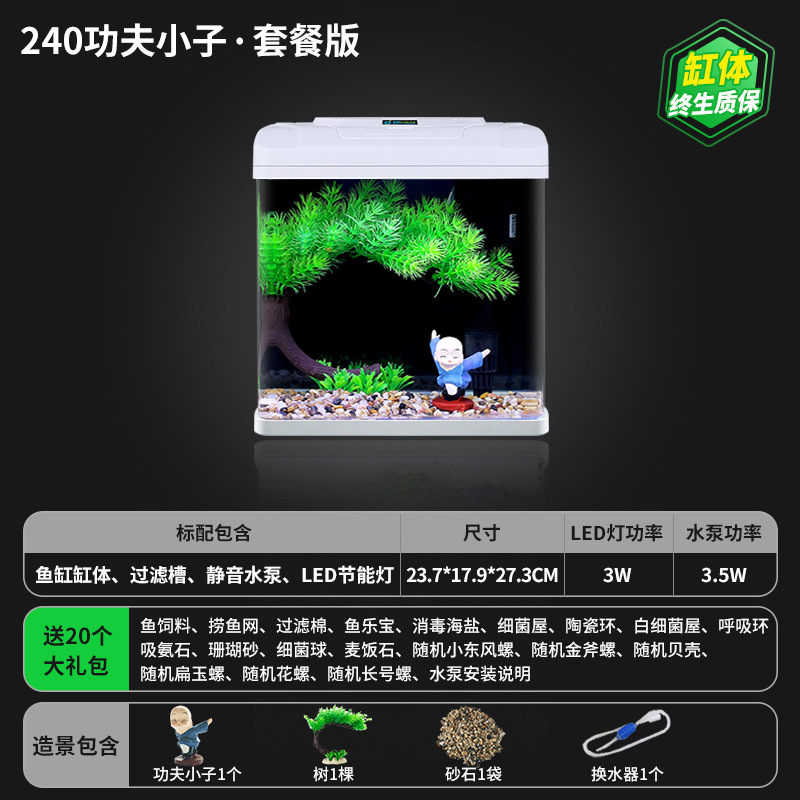 • **HD 유리 240 쿵푸/플러스 20개 선물 팩★워터 펌프 + 조명 + 산소 + 여과 시스템 포함★**