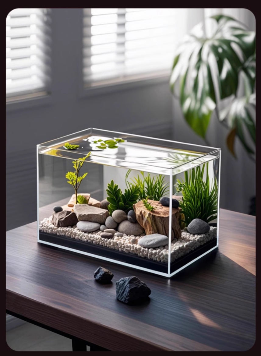 초백색 유리 작은 물고기 탱크 작은 거실 관상용 작은 물고기 풍경 수경 식물 거북이 가정용 사각형 탱크 생태 탱크