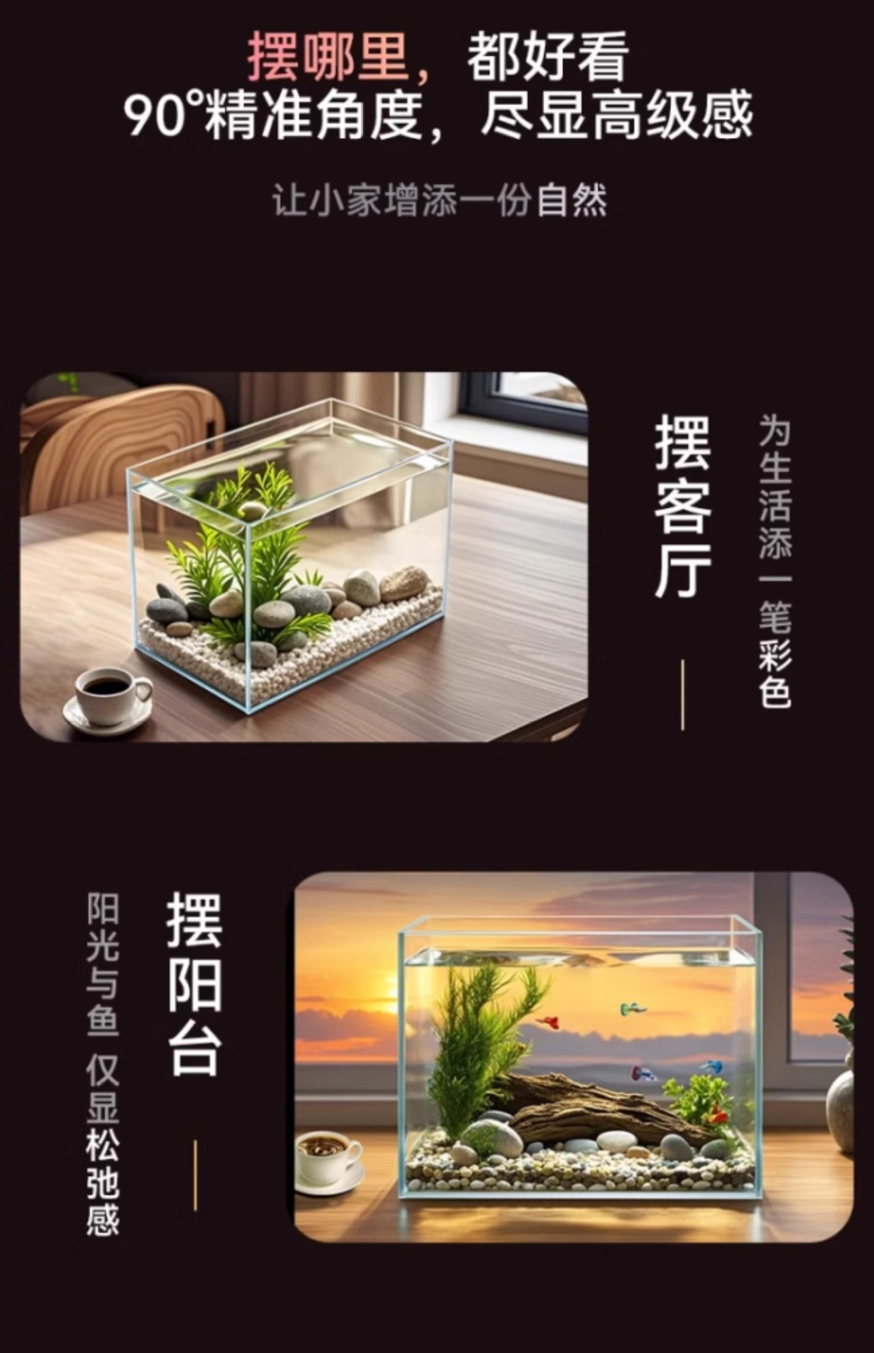 초백색 유리 작은 물고기 탱크 작은 거실 관상용 작은 물고기 풍경 수경 식물 거북이 가정용 사각형 탱크 생태 탱크스토어 가기