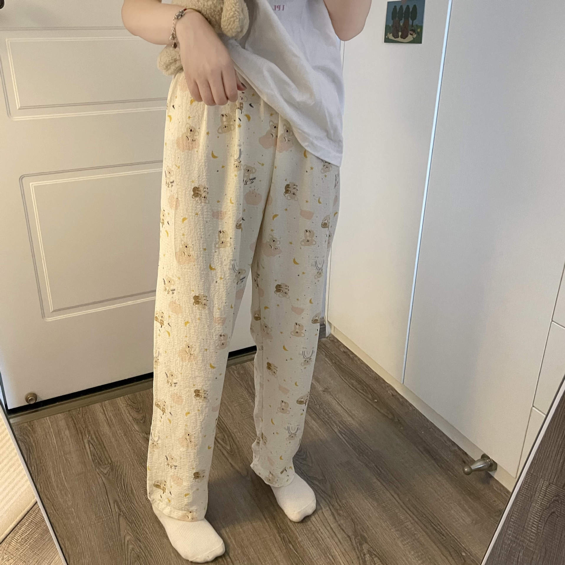 걷는 신 바지 만화 귀여운 게으른 바지 파자마 바지 탄성 허리 학생 홈 바지 여성 봄과 가을 여름 캐주얼 바지