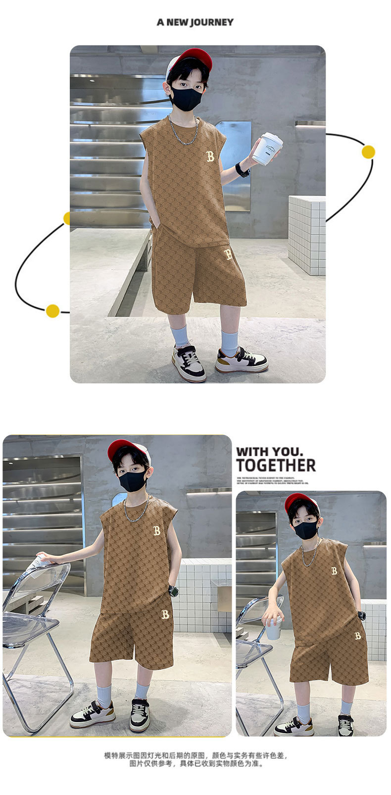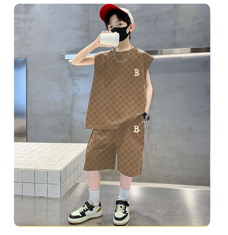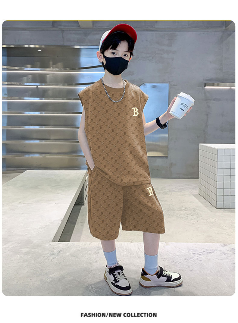 어린이 착용 소년 여름 착용 세트 2025 새로운 스타일 여름 스포츠 조끼 중 및 대형 어린이 여름 스타일 소년 유행 브랜드 잘 생긴
