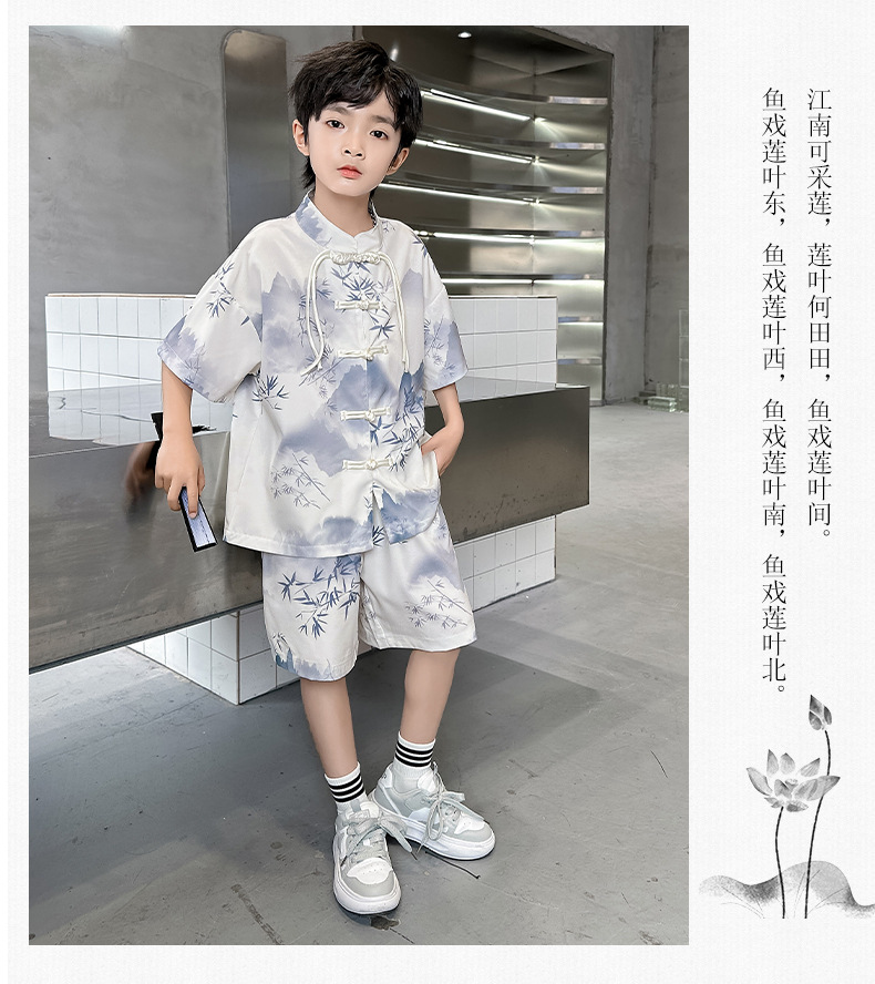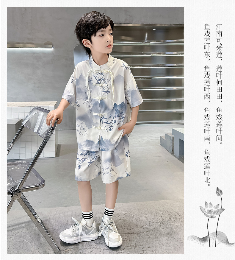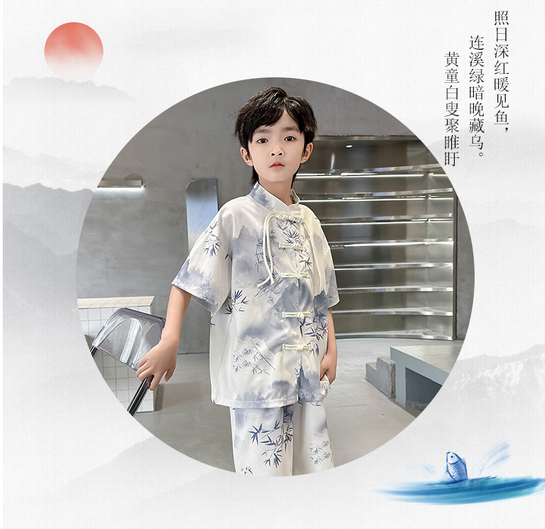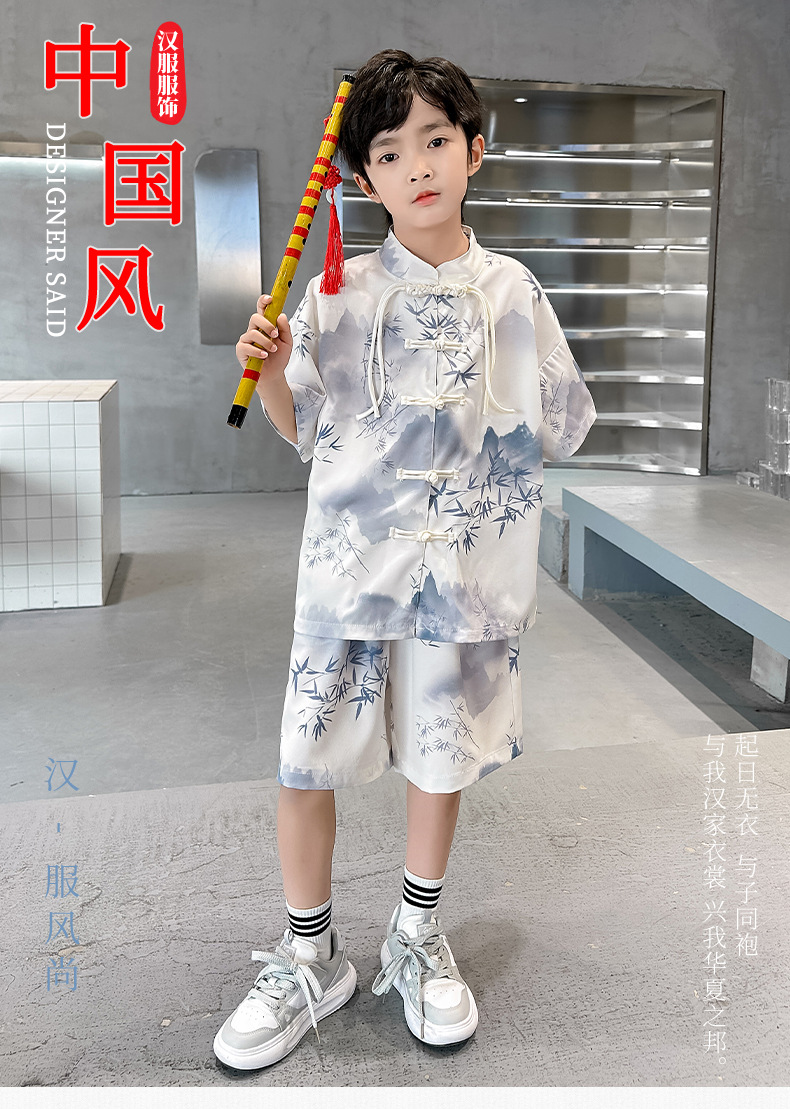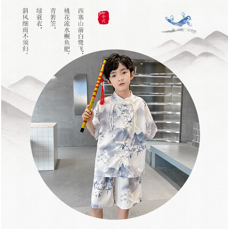 남학생 탕 세트 초등학생을위한 반팔 중국 스타일 공연 세트 새로운 중국 스타일 클래스 세트 Guoxue 의류 투피스 얇은 유행 세트