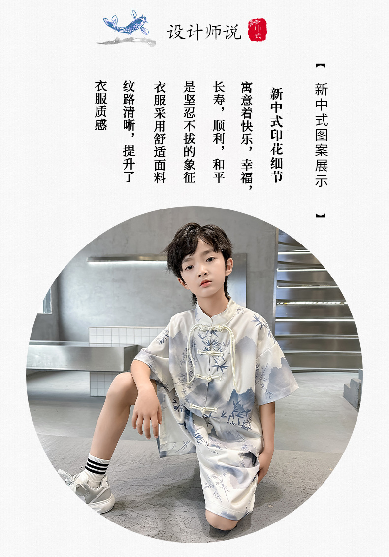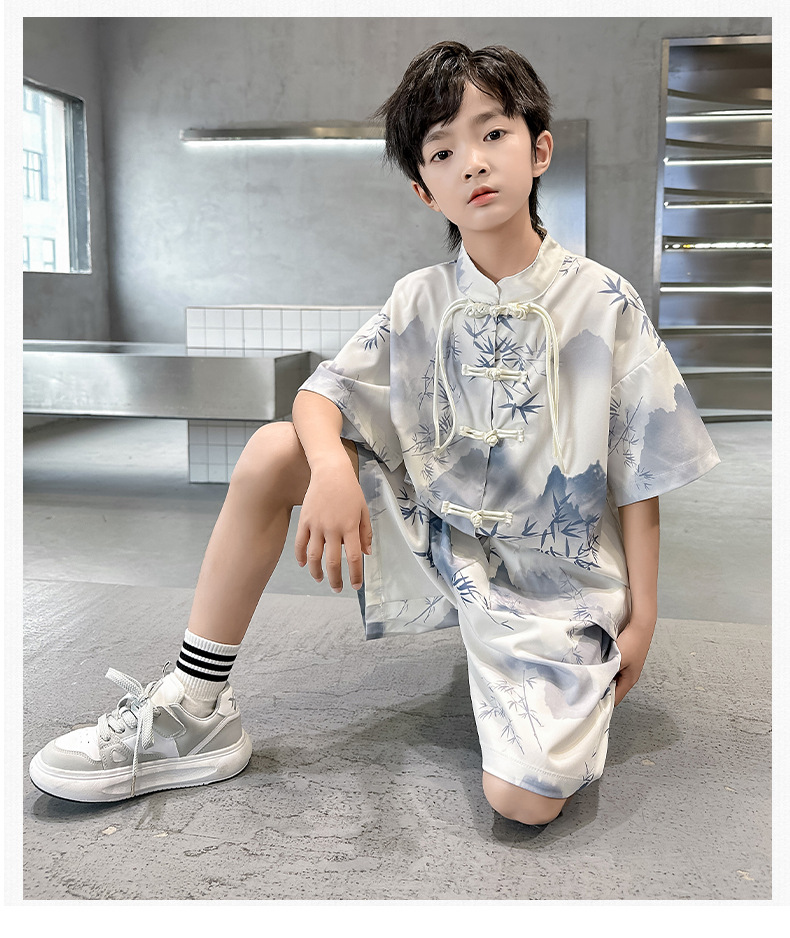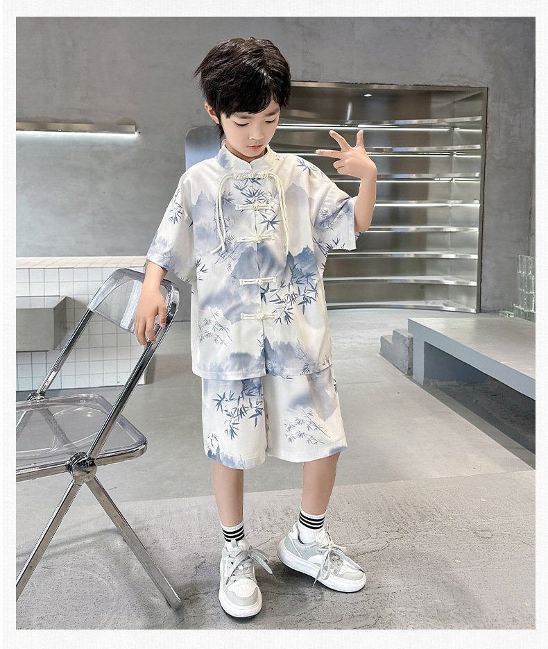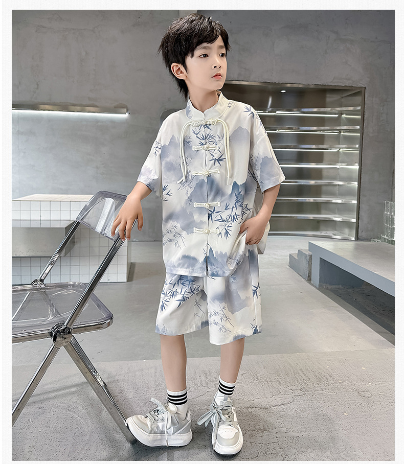 남학생 탕 세트 초등학생을위한 반팔 중국 스타일 공연 세트 새로운 중국 스타일 클래스 세트 Guoxue 의류 투피스 얇은 유행 세트