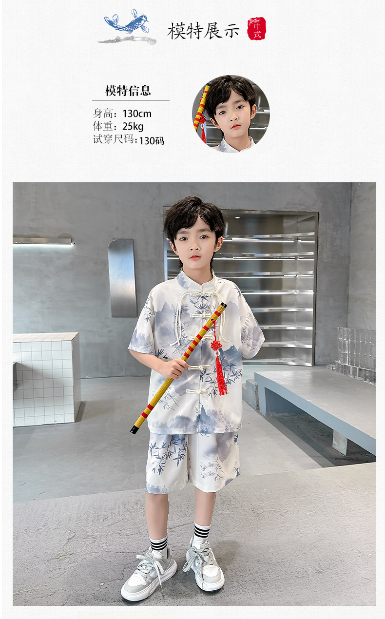 남학생 탕 세트 초등학생을위한 반팔 중국 스타일 공연 세트 새로운 중국 스타일 클래스 세트 Guoxue 의류 투피스 얇은 유행 세트스토어 가기