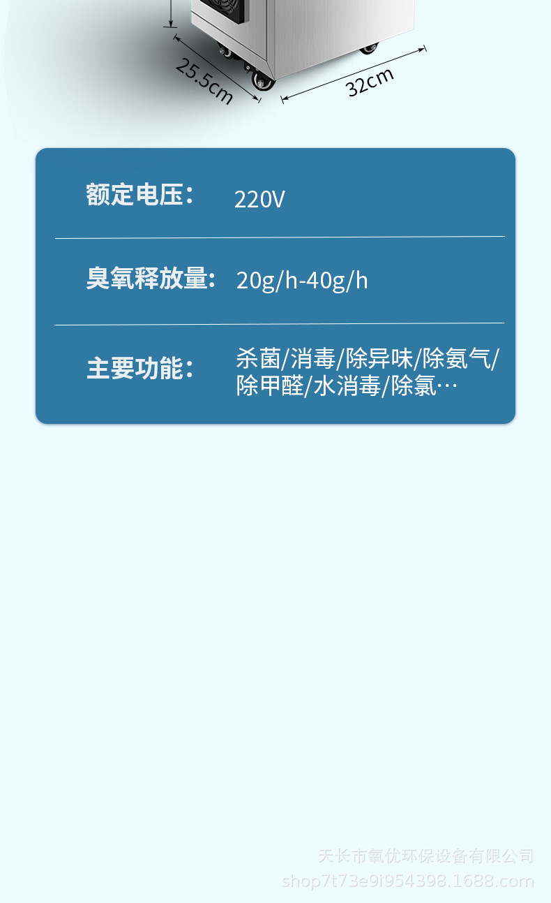 물 처리 오존 소독 기계 20g 오존 발전기 살균 소독 및 냄새 제거 식품 공장 작업장 공장