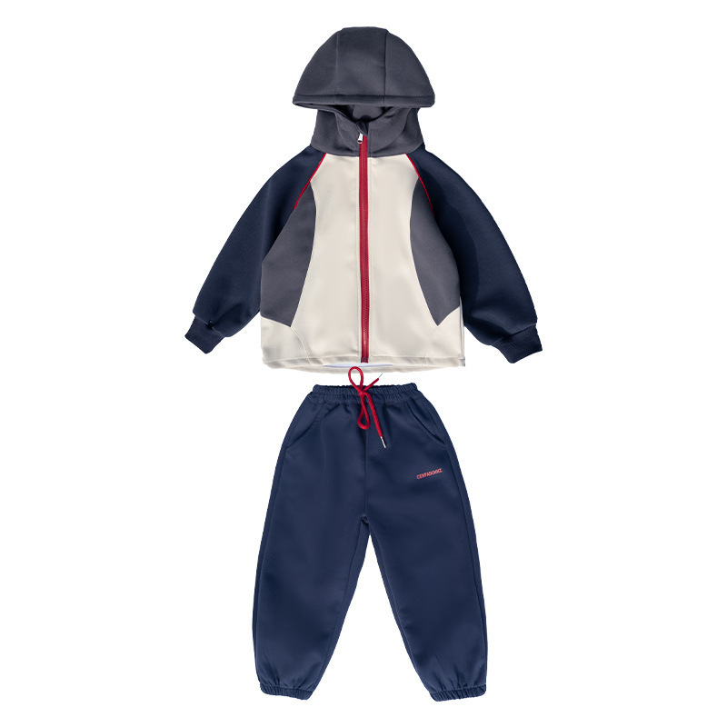 소녀 2025 미국식 후드 더블 지퍼 대비 컬러 재킷 크록 바지 세트 가을 신작 소녀 투피스 유행 세트스토어 가기