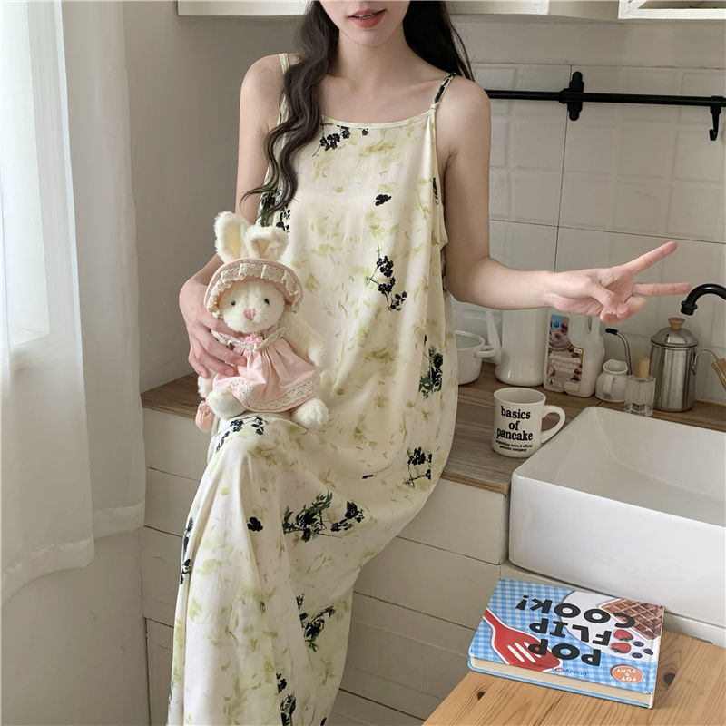 슬링 코튼 실크 나이트가운 여성의 여름 민소매 긴 원피스 여름 플러스 사이즈 아웃웨어 임산부 스커트 인공면 파자마