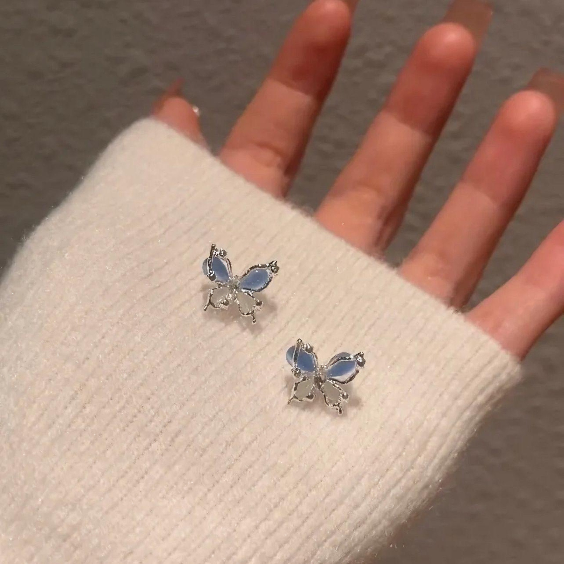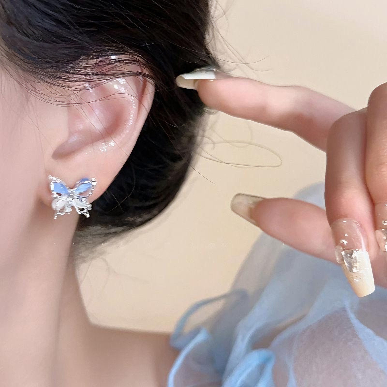 S925 실버 바늘 작은 신선한 하이 엔드 센스 지르콘 나비 귀걸이 여성용 트렌디 올매치 우아한 절묘한 귀걸이