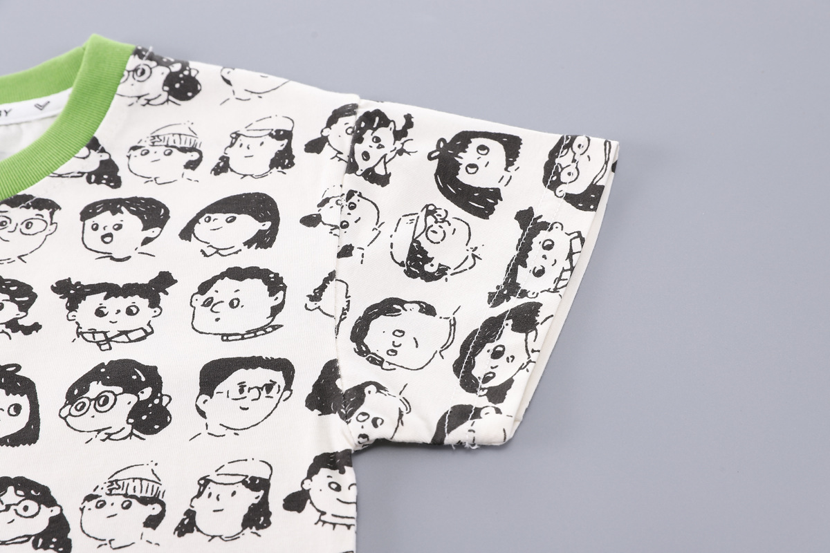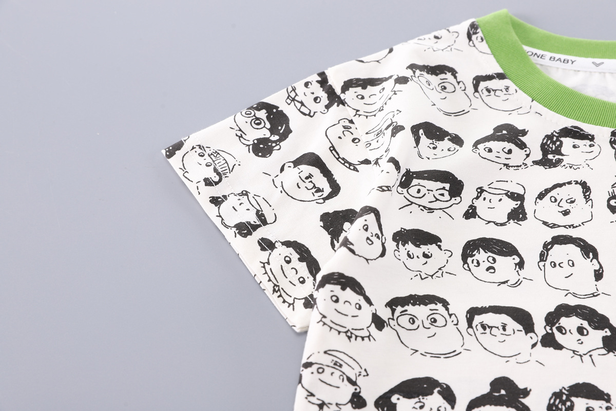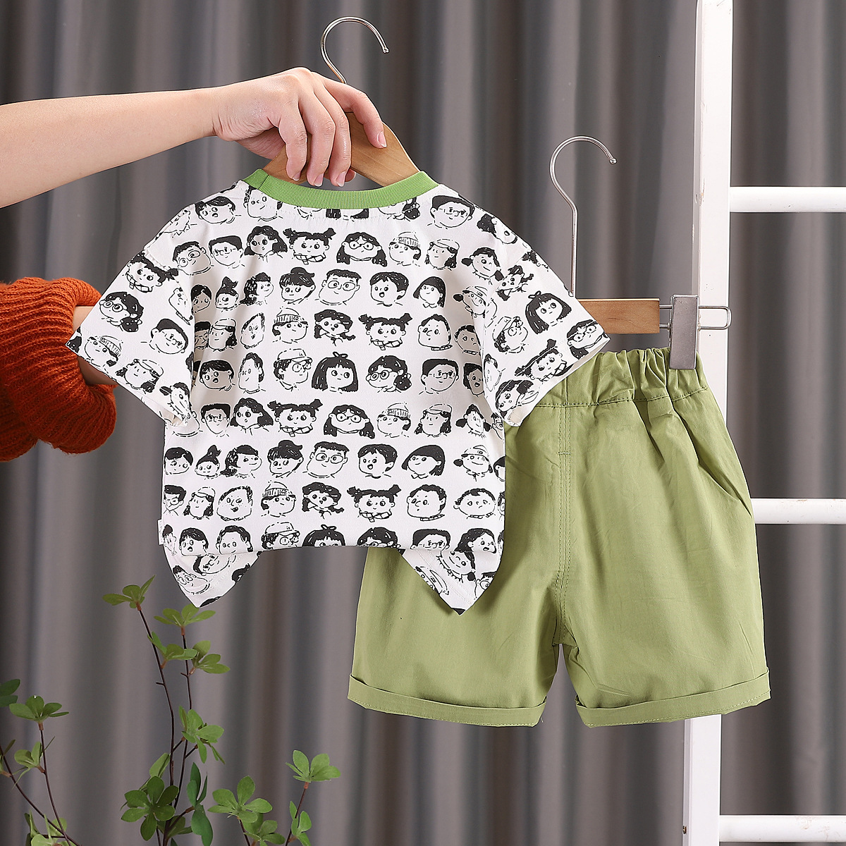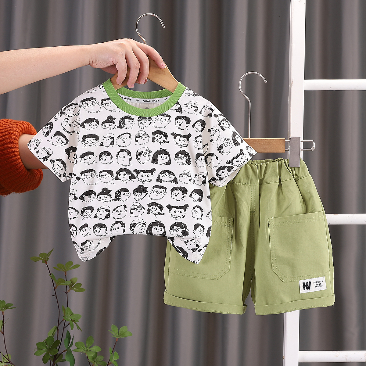 소년의 여름 옷 세트 새로운 어린이 옷 아기의 여름 어린이 옷 얇은 전체 인쇄 작은 사람들 반팔 투피스 세트