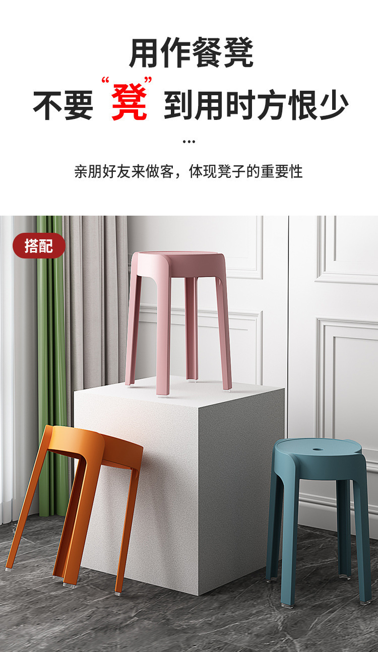 북유럽 패션 라운드 의자 플라스틱 두꺼운 성인 의자 쌓을 수있는 식탁 벤치 가정용 의자 대기 의자 높은 의자
