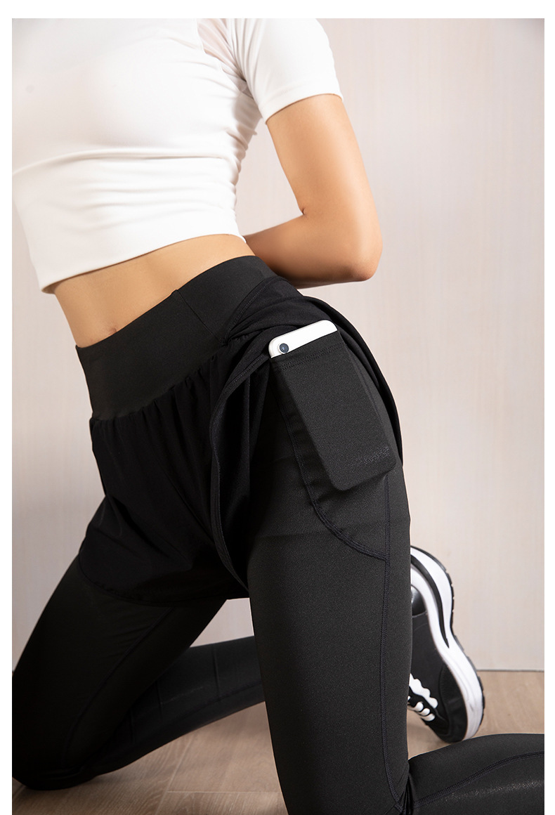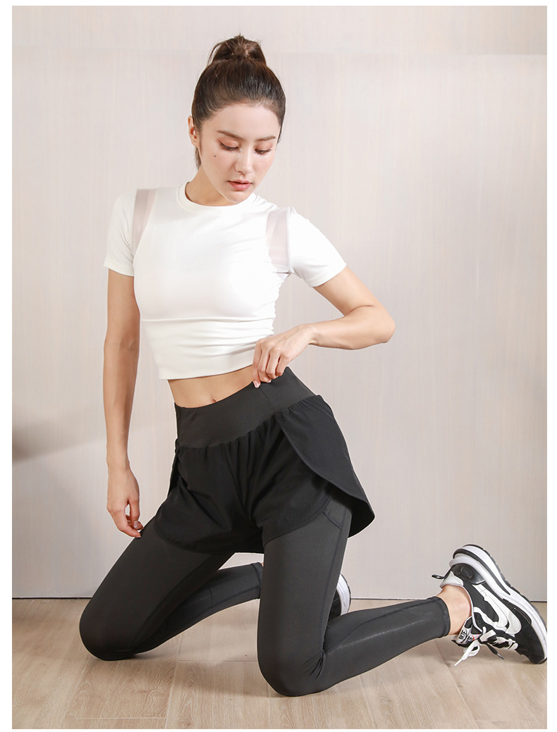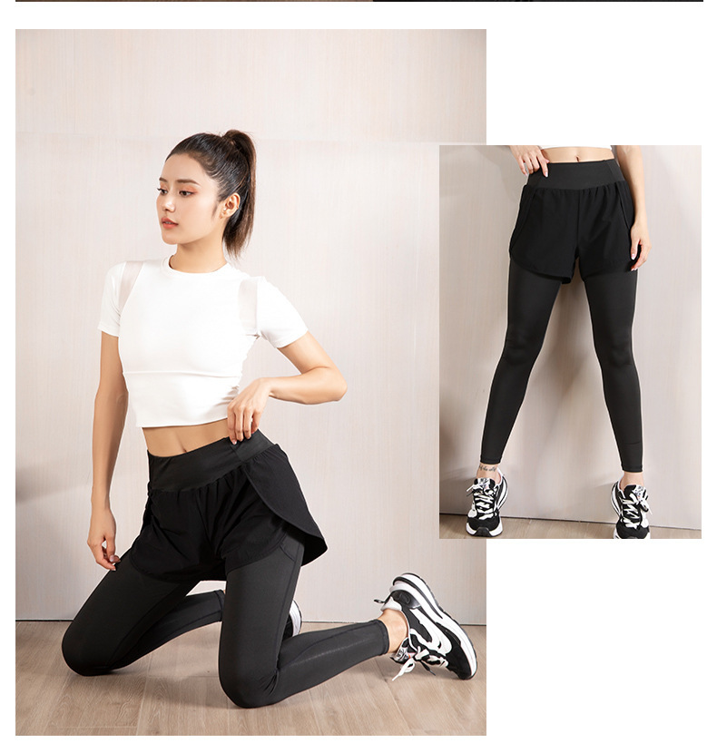 여성용 페이크 투피스 포켓 요가 팬츠, 하이웨이스트 탄력 힙업 러닝 피트니스 팬츠, 타이트한 스포츠 롱 팬츠, 편안한 바디 쉐이핑스토어 가기