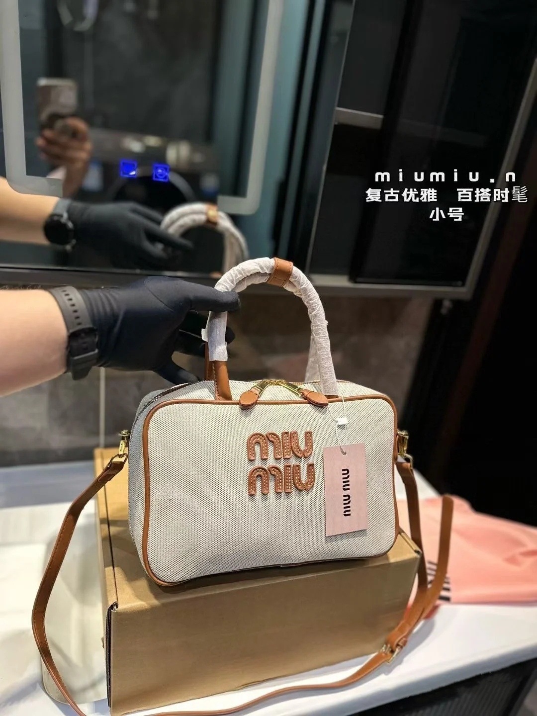 미우 2024 가을 겨울 볼링백 서류가방 핸드백 크로스백 여성용 캔버스백 토트백 휴대용스토어 가기