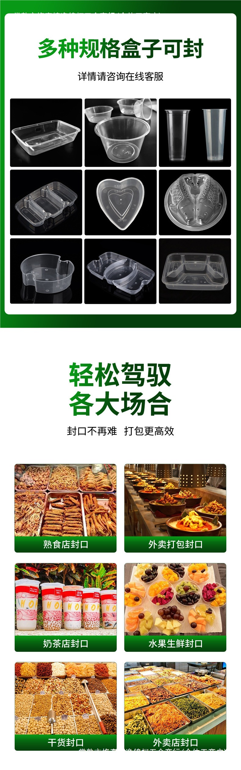 자동 전기 밀봉 기계 도시락 오리 목 절인 베일러 잠금 신선한 밀봉 기계 플라스틱 상자 포장 기계 상업스토어 가기