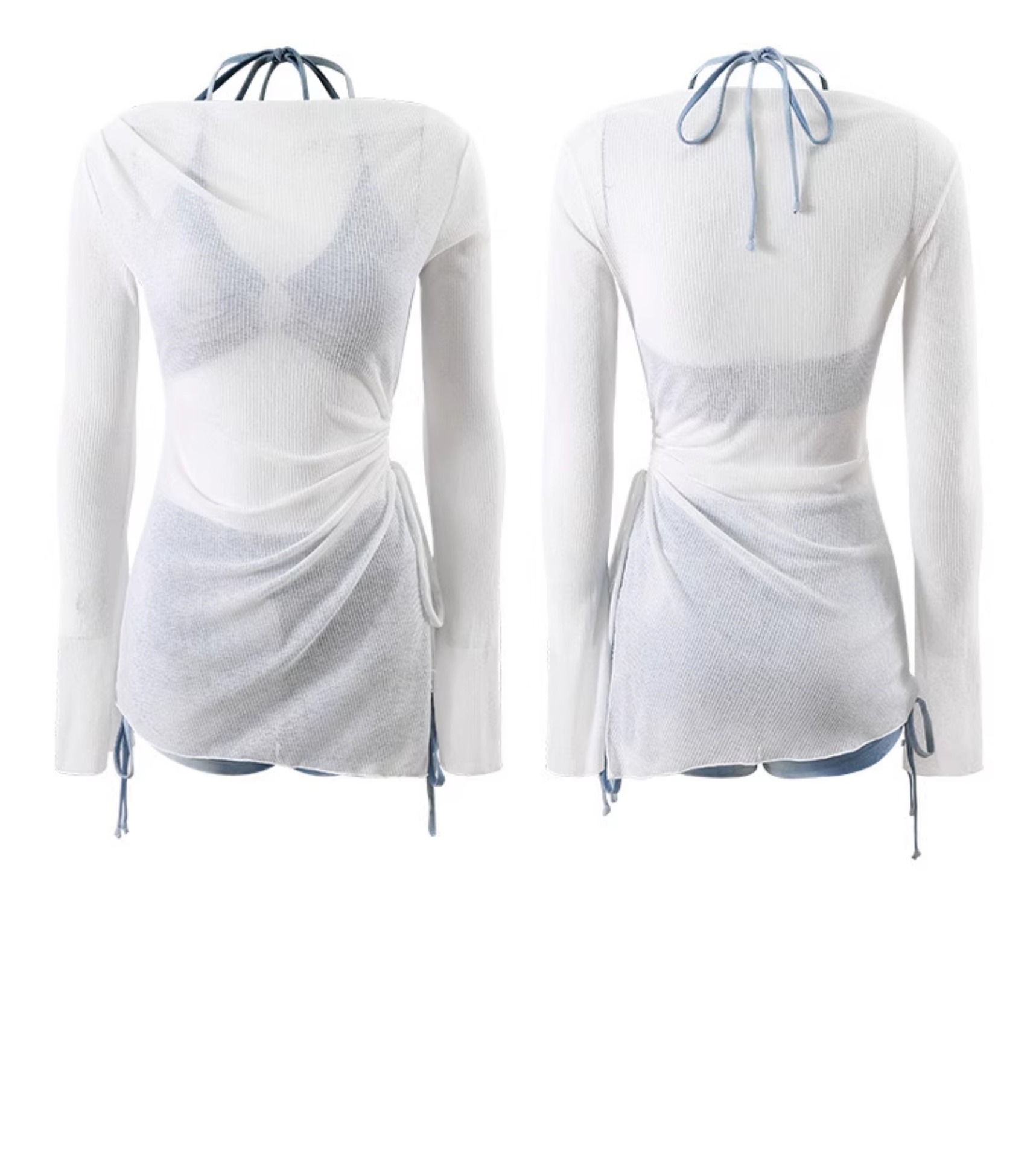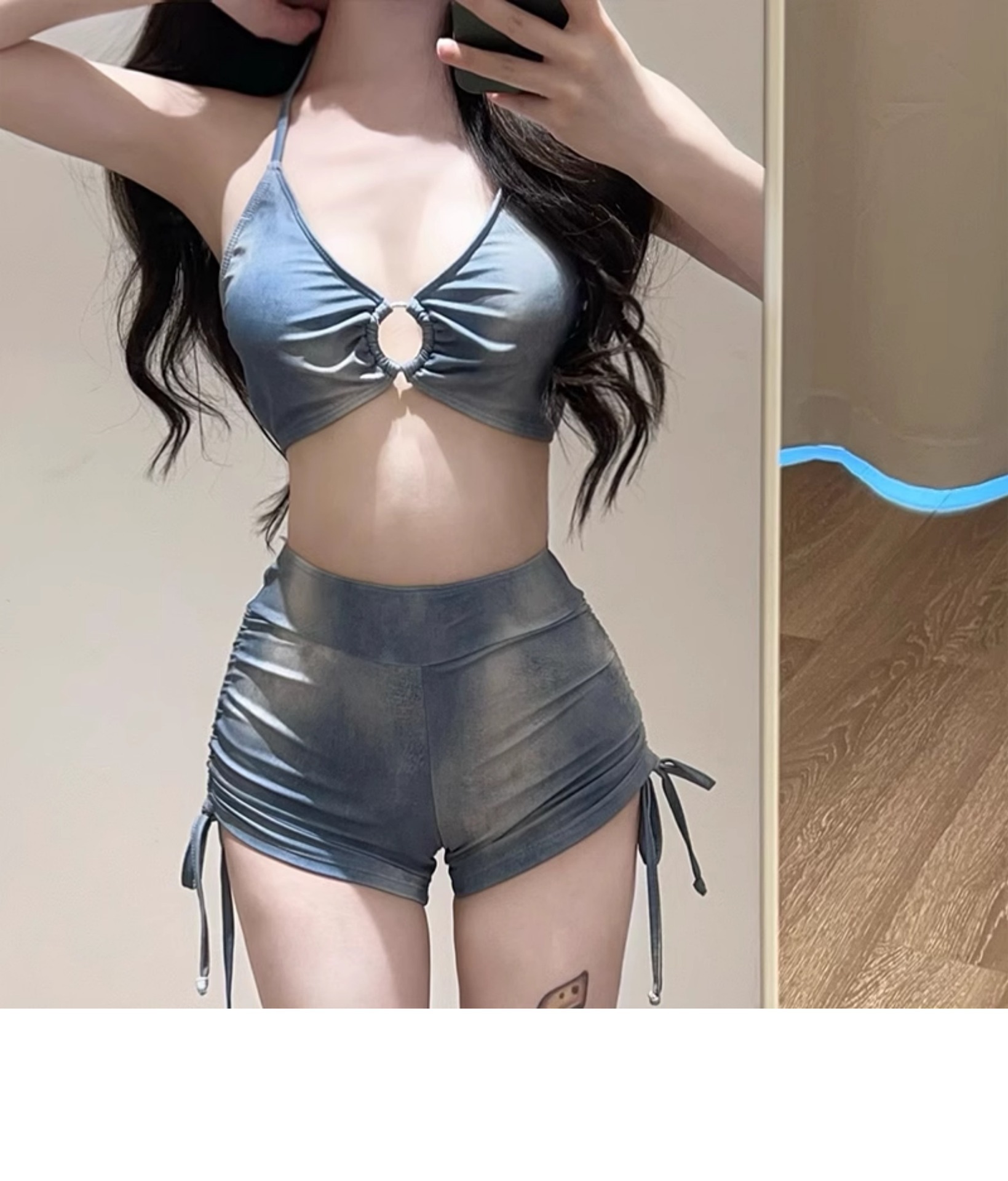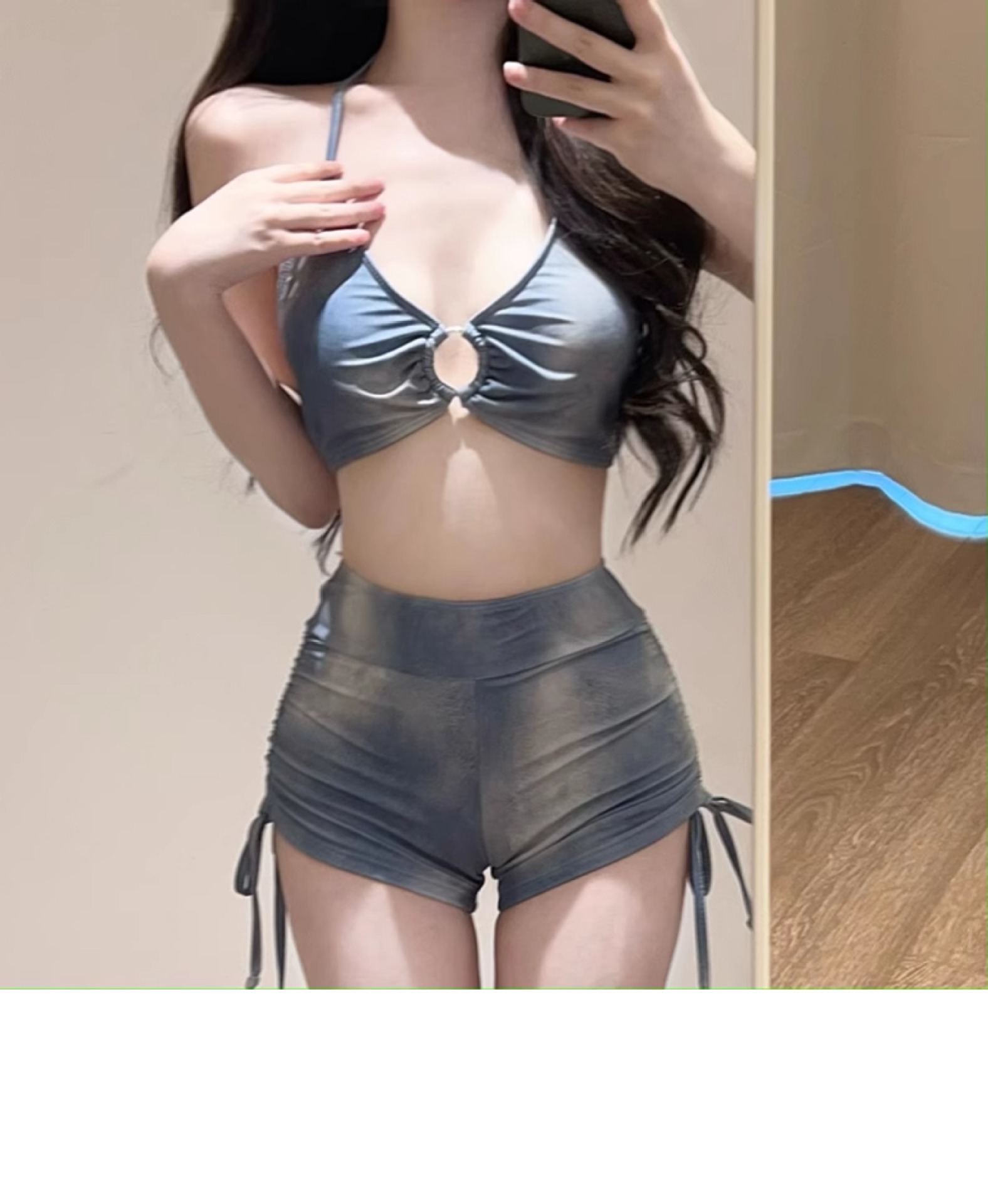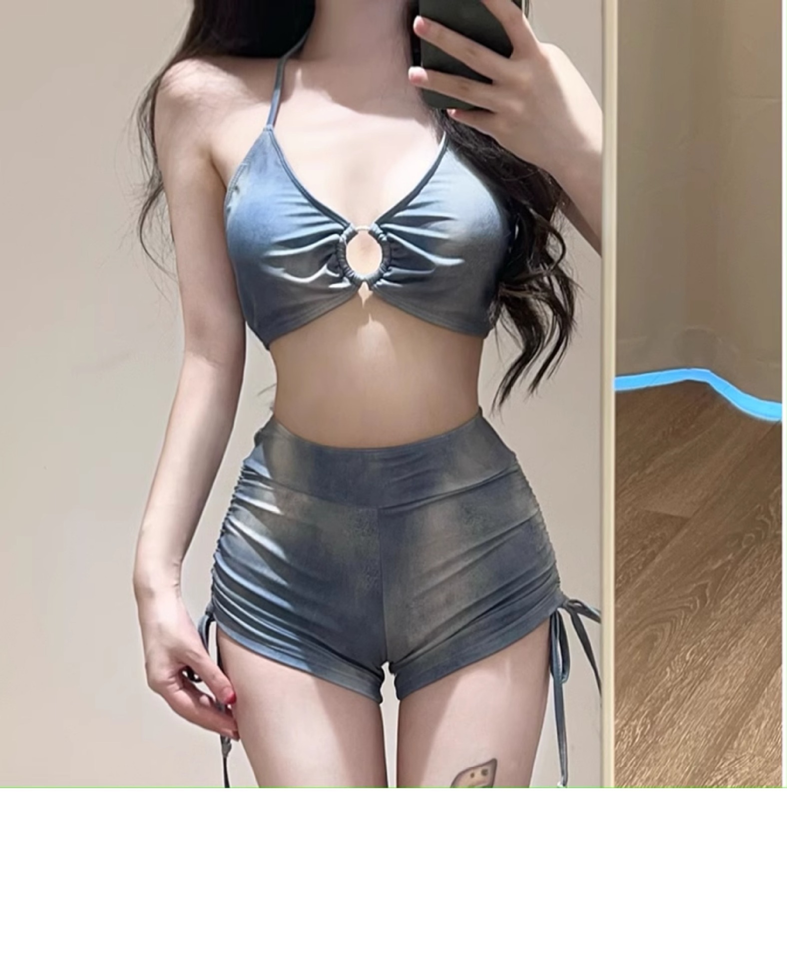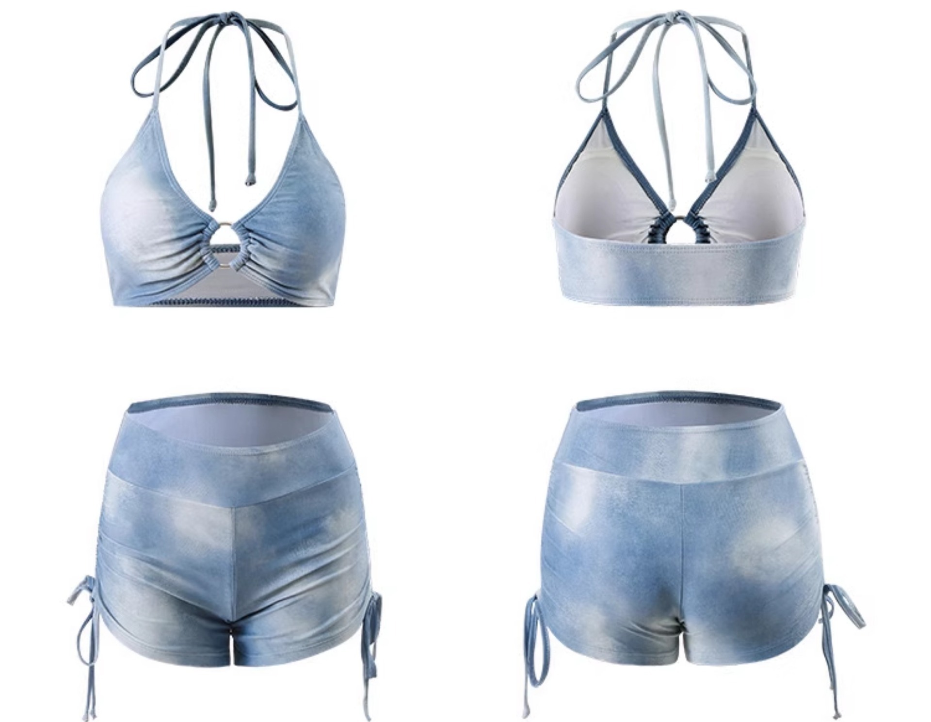 수영복 여성용 블루 타이 다이 스플릿 비키니 블라우스 섹시한 순수한 욕망 여성 스파 수영복 3 피스 세트