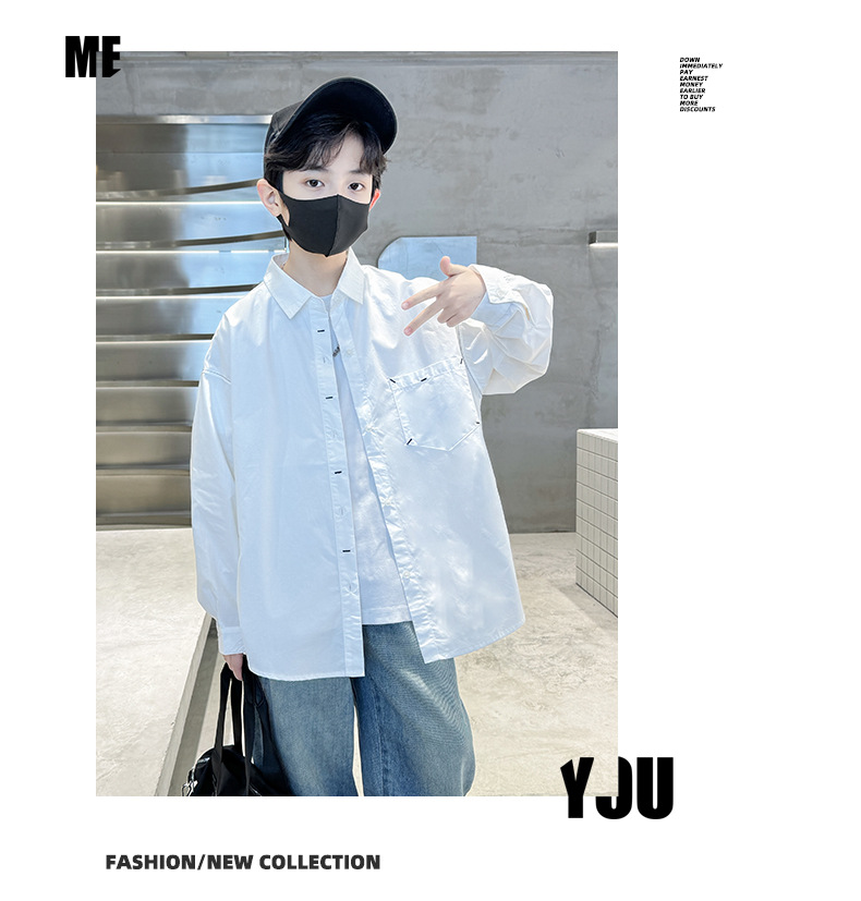 소년의 흰색 셔츠 단색 예술적 스타일 모든 경기 매듭 셔츠 봄과 가을 2025 새로운 패션 잘 생긴 공장 아울렛