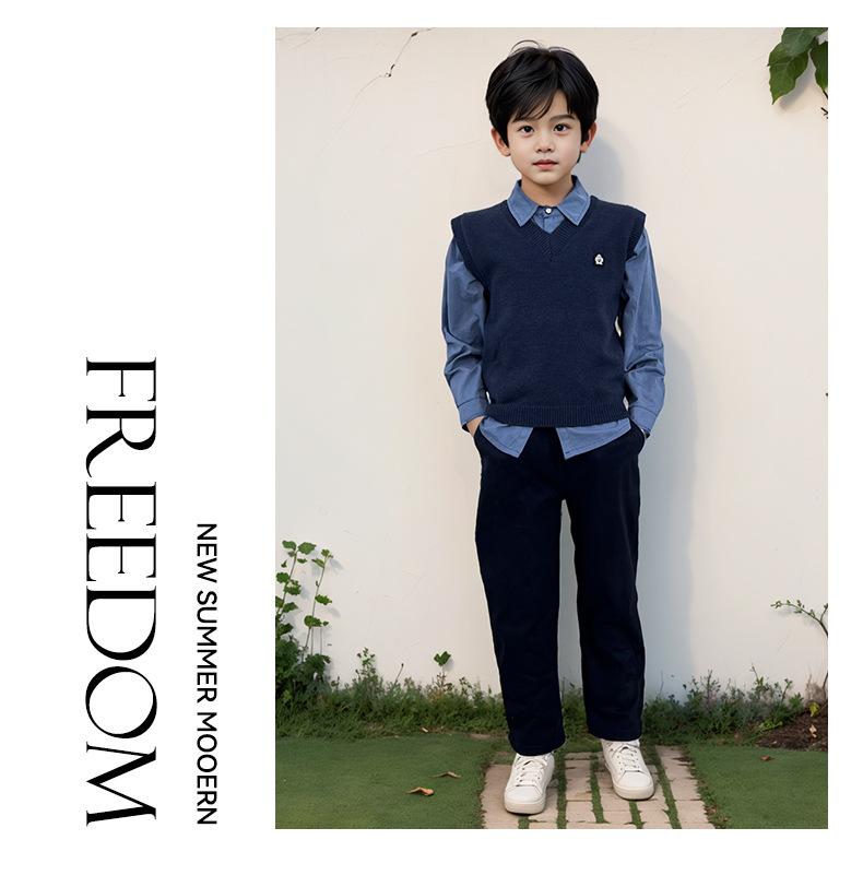 봄 니트 어린이 대학 스타일 세트 봄 중소 어린이 잘 생긴 셔츠 칼라 소년의 봄 원피스 3 피스 유행 세트스토어 가기