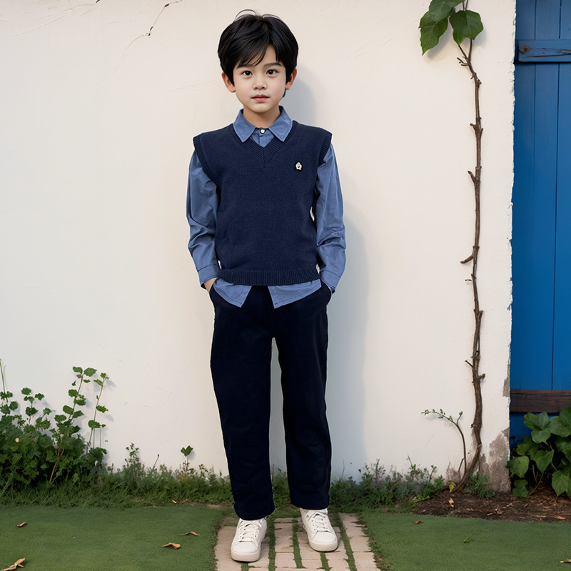 • 블루 컬리지 스타일 [조끼, 셔츠, 바지]