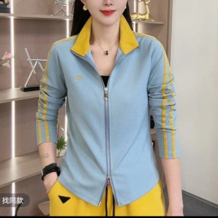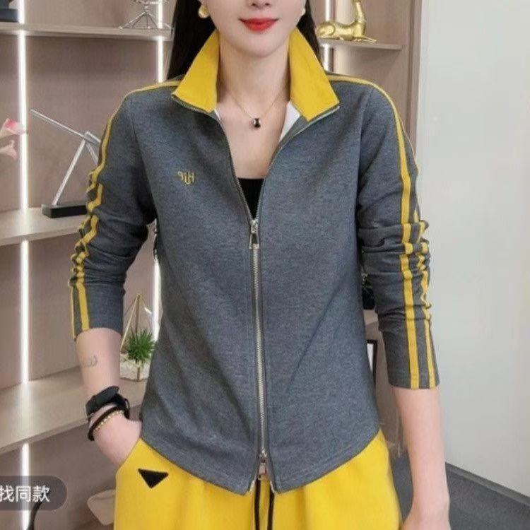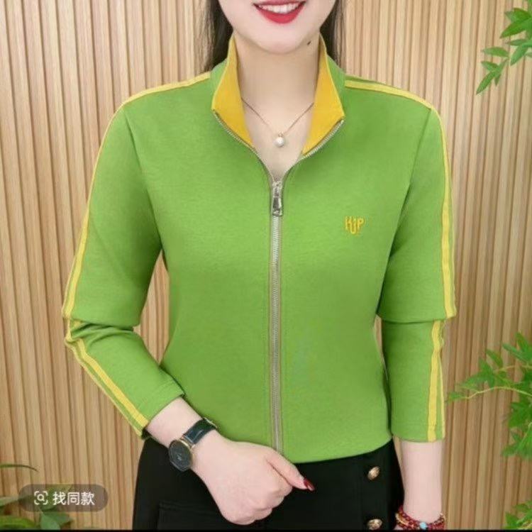 스포츠웨어 여성 봄과 가을 패션 칼라 노인 연령 감소 기질 스웨터 작은 캐주얼 코트스토어 가기
