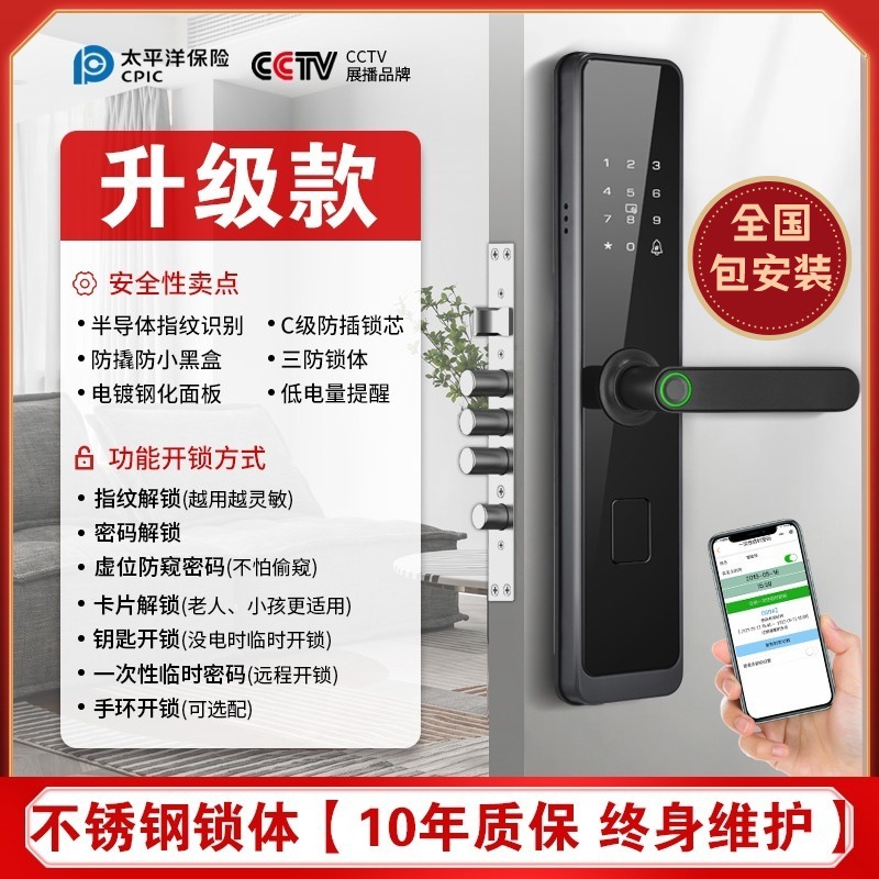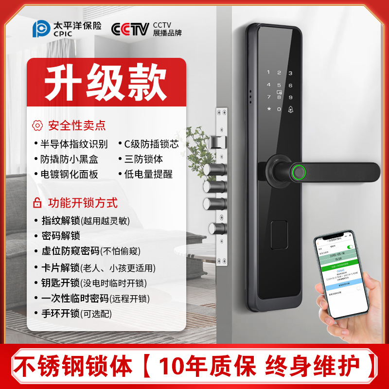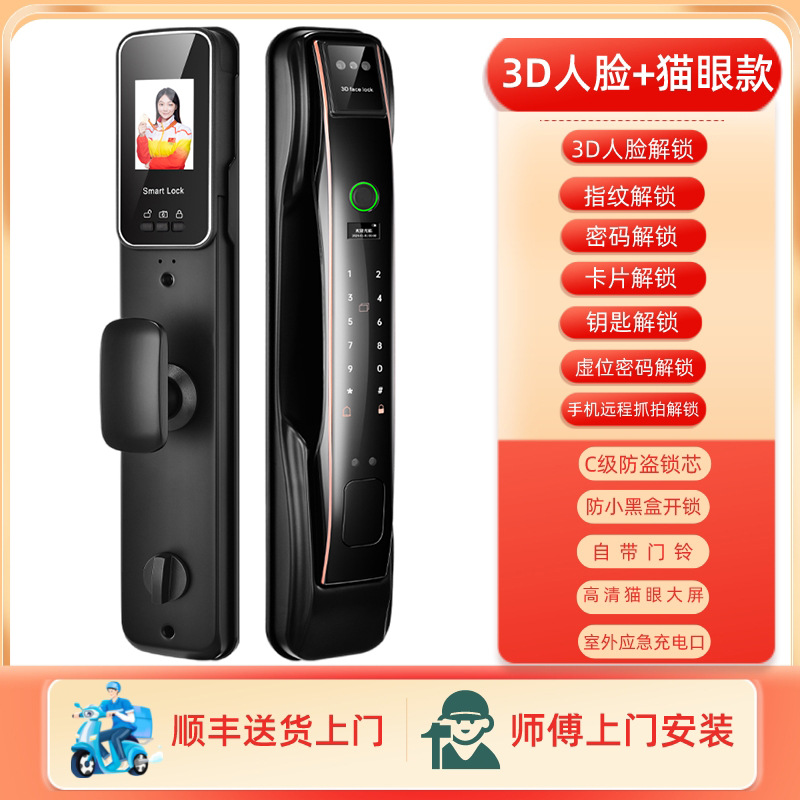 잠금 Mi Youpin 스마트 도어 잠금 지문 잠금 홈 보안 도어 암호 잠금 얼굴 인식 시각적 고양이의 눈 전자 잠금스토어 가기