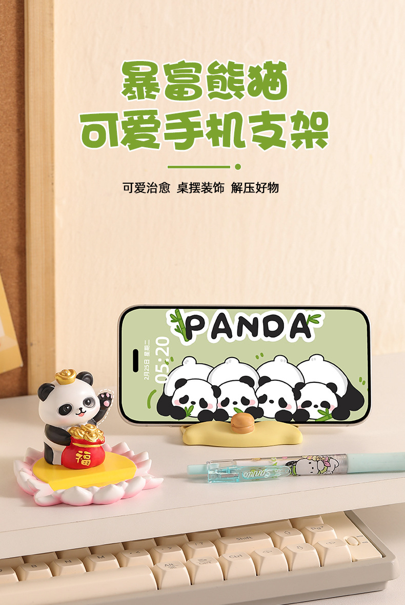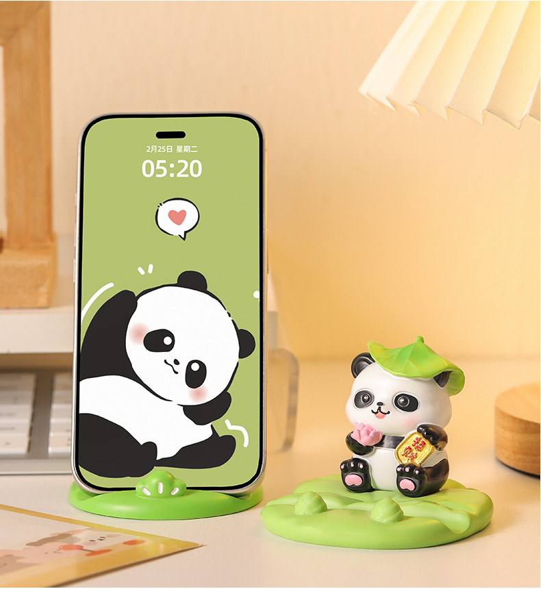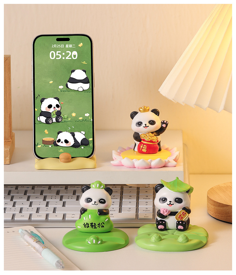 새로운 창조적 인 팬더 휴대 전화 브래킷 게으른 사람들을 쫓는 드라마 플랫 지원 선반 데스크탑 장식 선물 수지 장식품