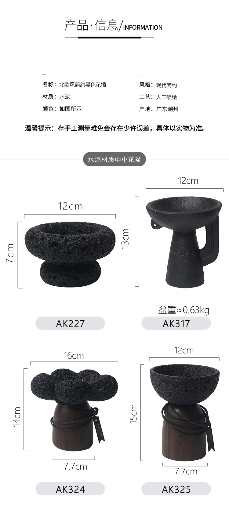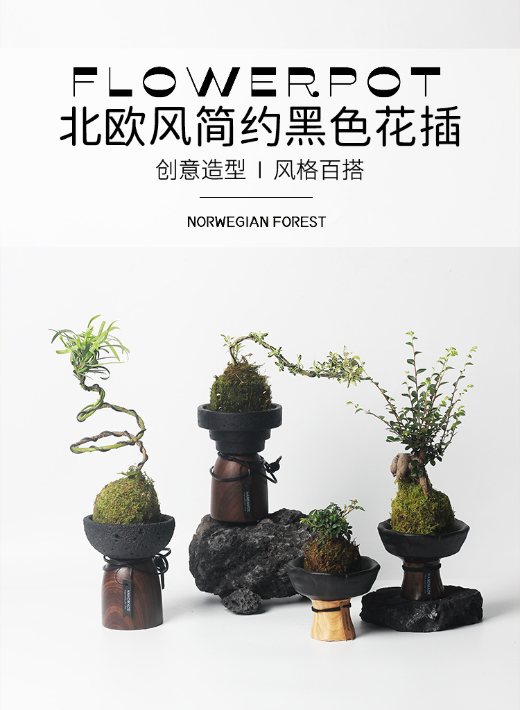 • CJ007+목재입자 흑색 시멘트 화분(무공성)