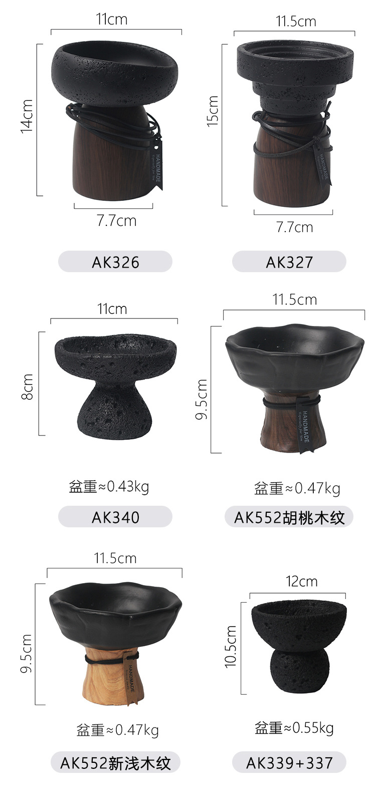 • AK552 뉴라이트우드그레인 블랙시멘트 화분(무공성)