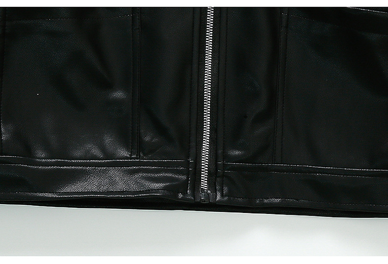 • 블랙 8234V 더블 포켓 가죽 재킷