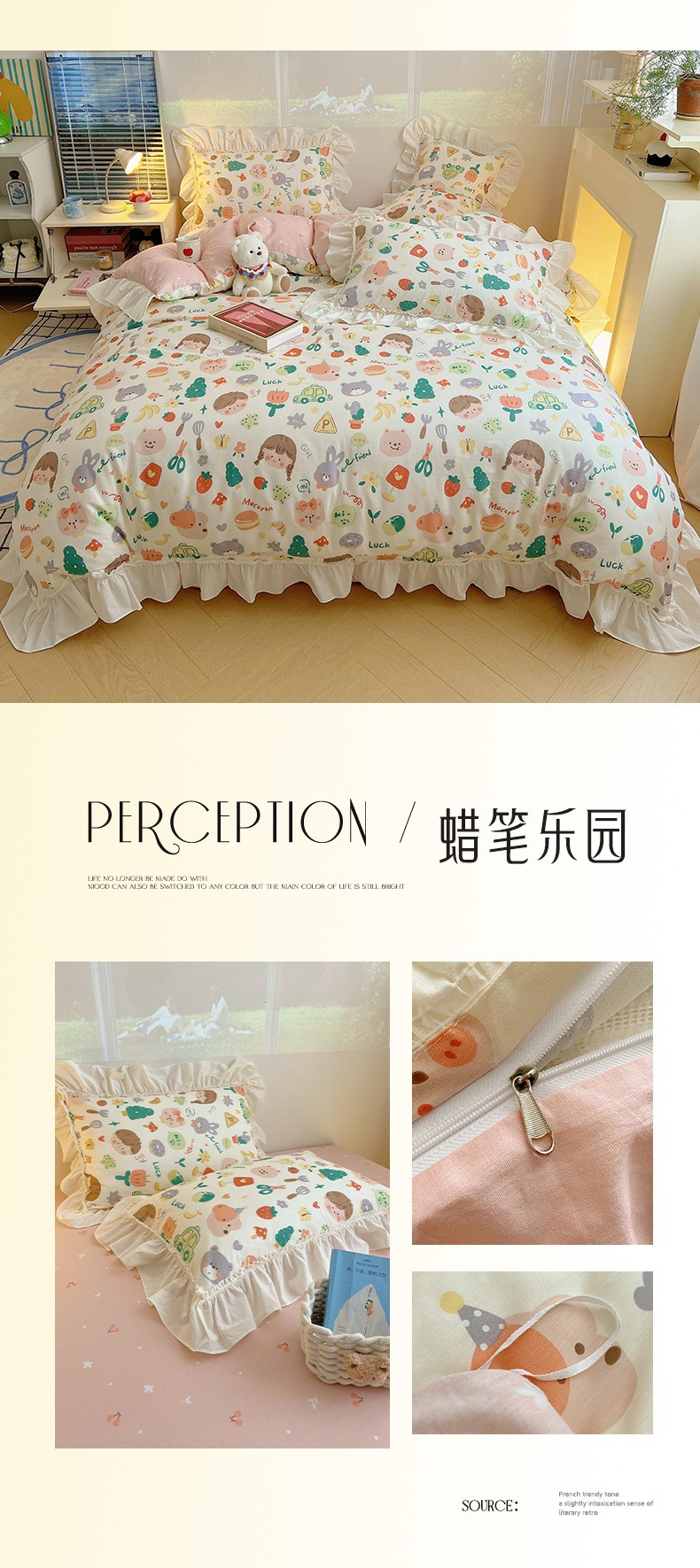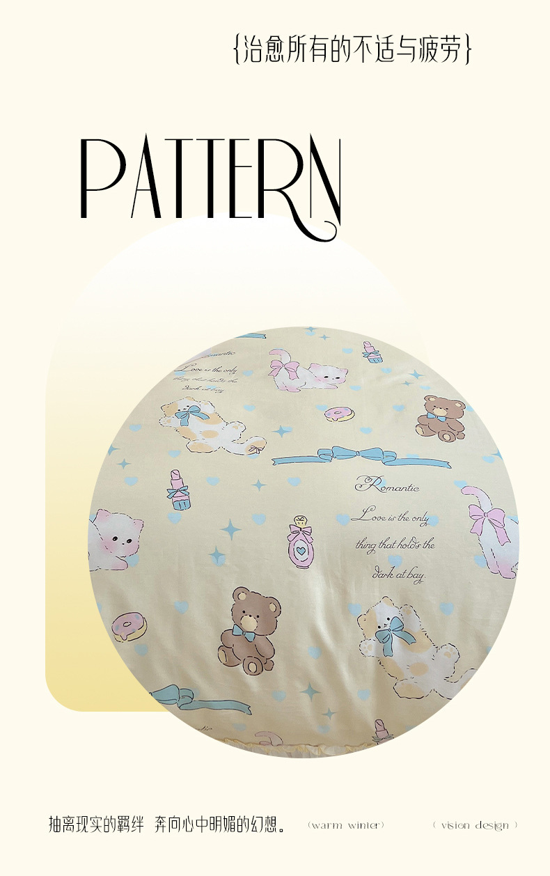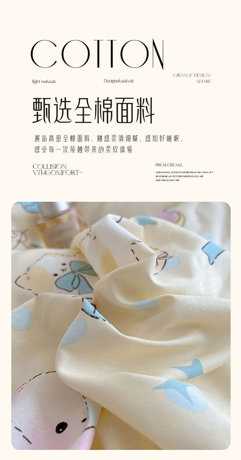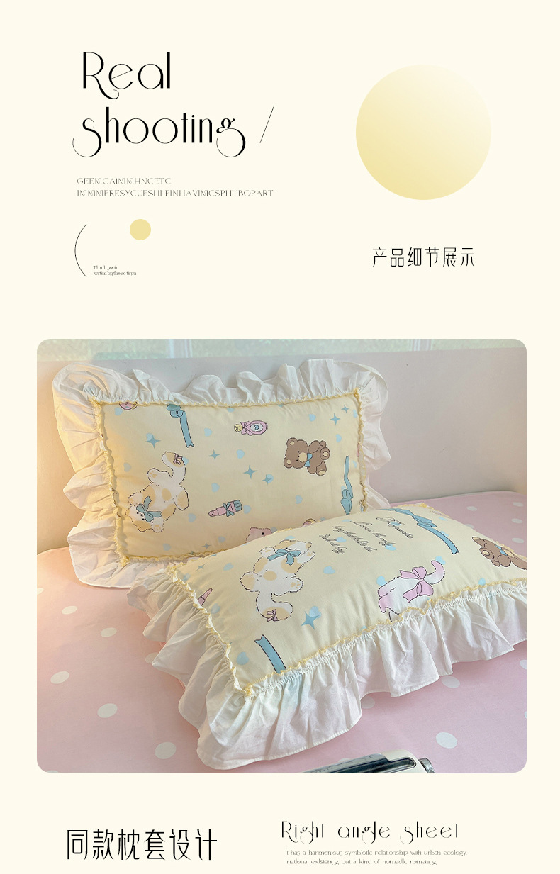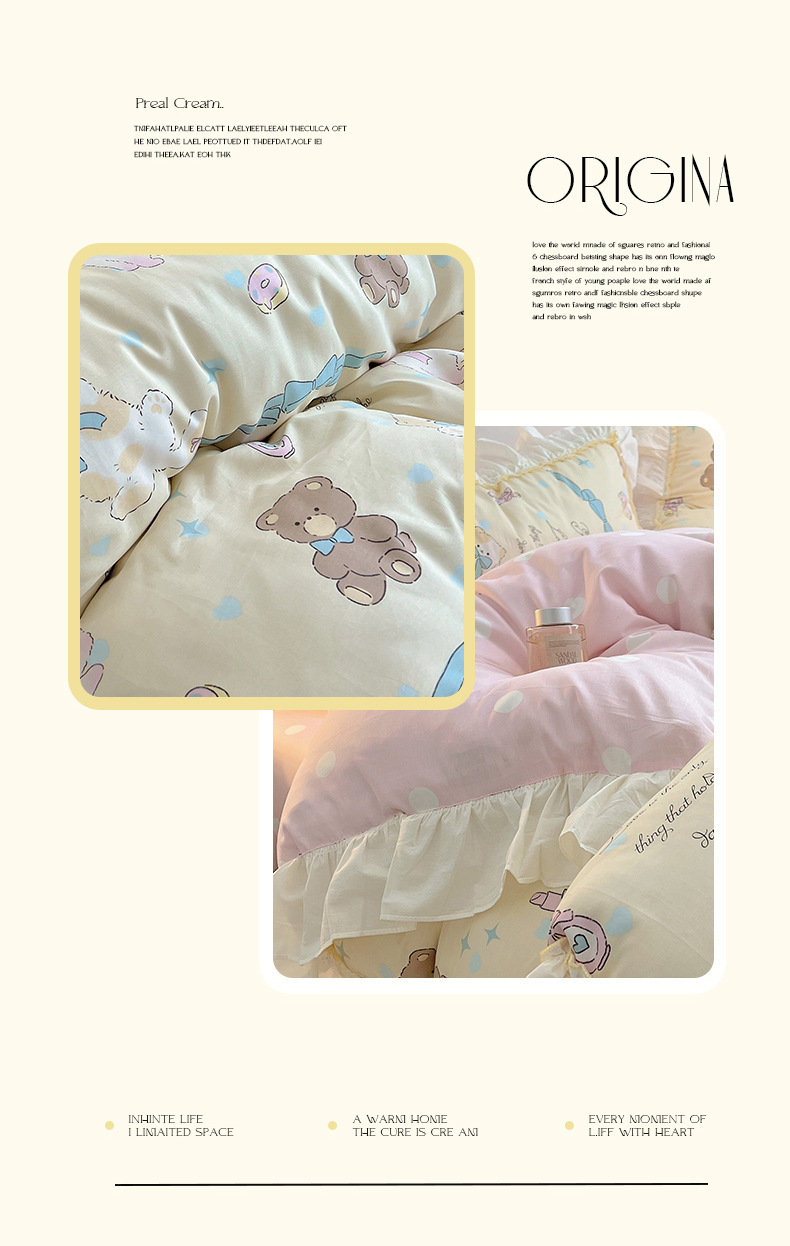 봄 만화 면화 4 피스 세트 Nantong 침구 레이스 코튼 침대 시트 퀼트 커버 3 피스 기숙사 이불 커버