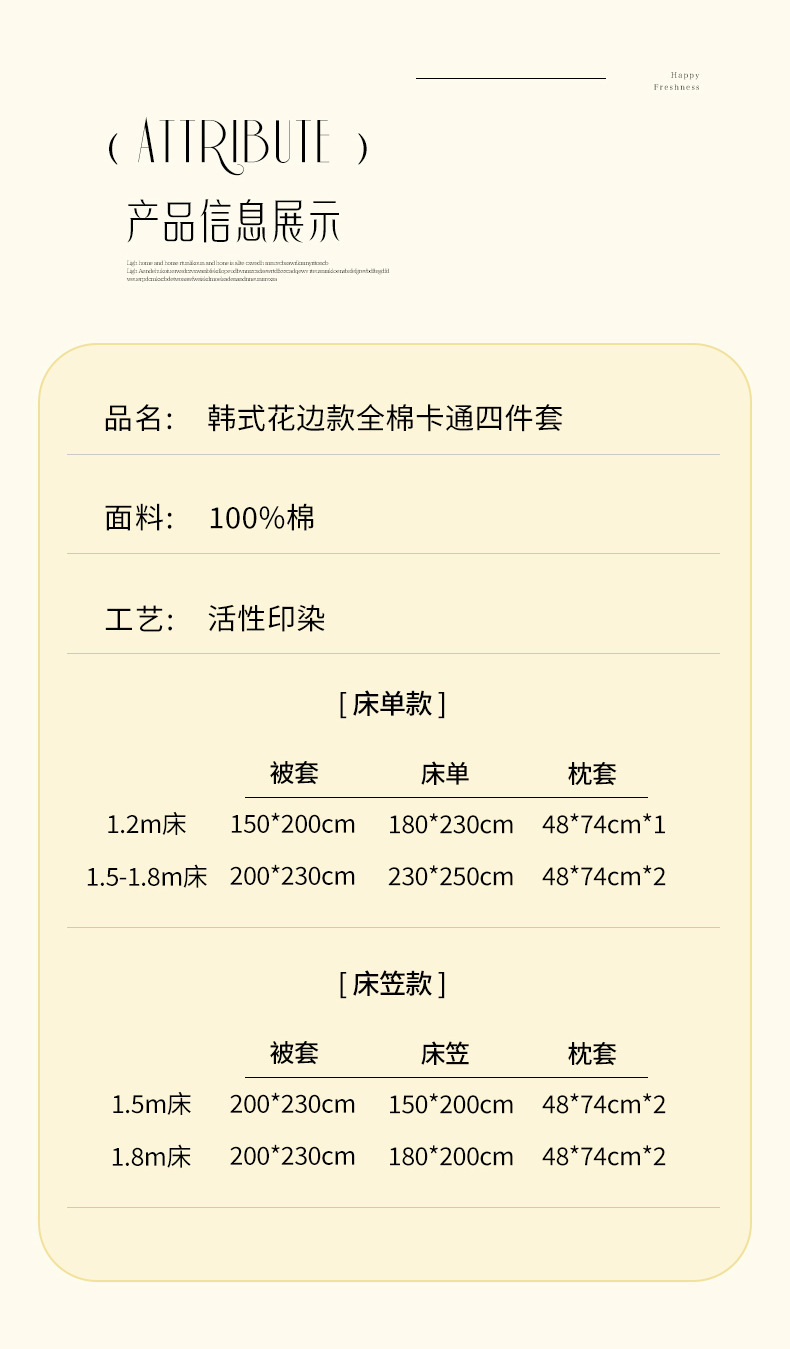 • 1.5m 침대 시트 4종 세트, 이불 커버 2.0*2.3m 침대 시트 2.3*2.5m 베개 커버*2