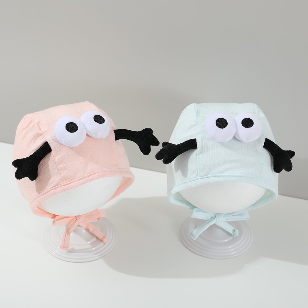 2025 작은 괴물 큰 눈 만화 아기 모자 봄과 여름 달콤한 슈퍼 귀여운 태아 모자 레이스 업 모자 방풍 따뜻한 모자스토어 가기