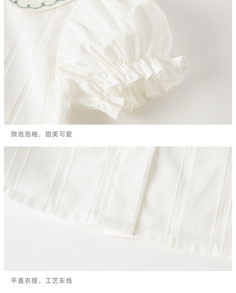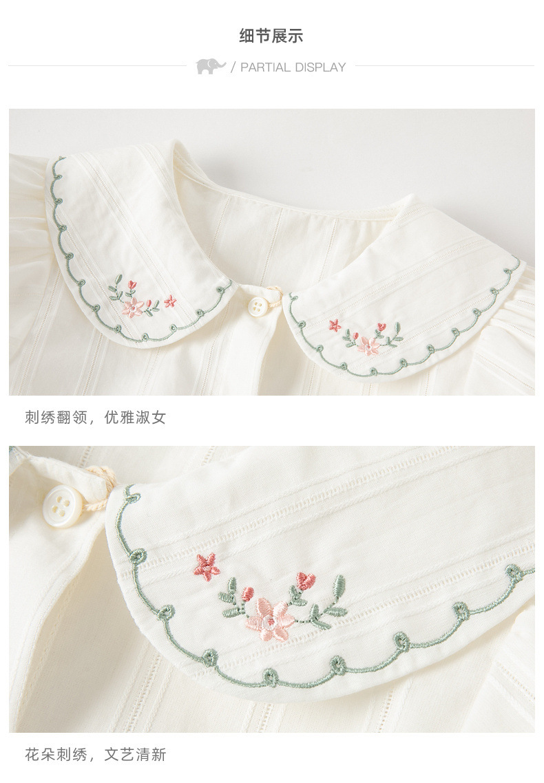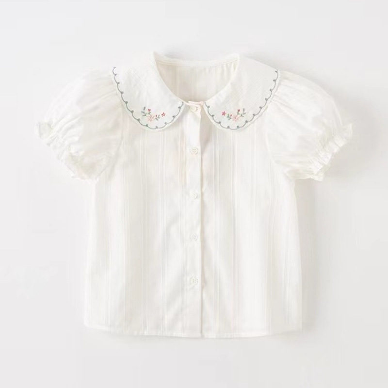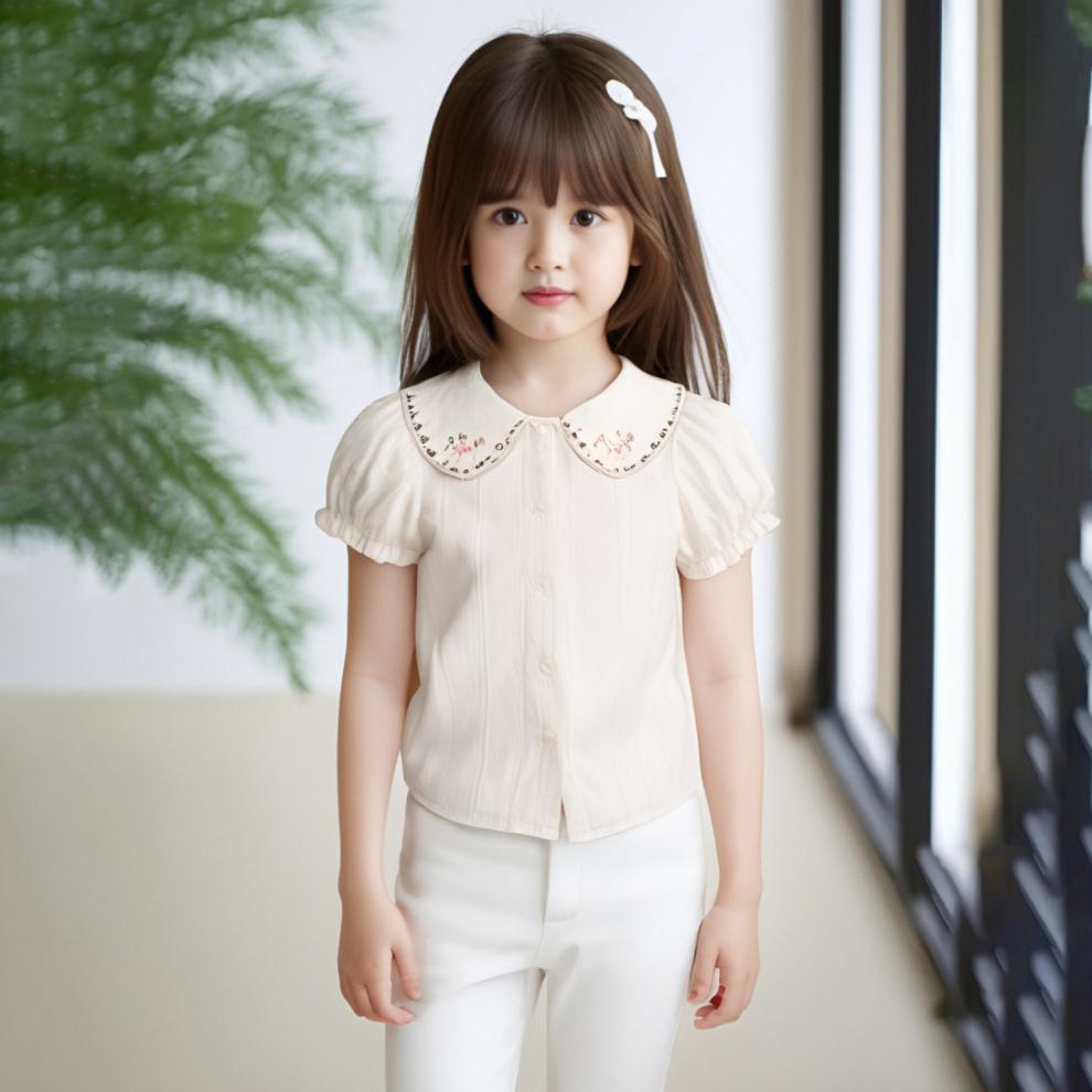 어린이 반팔 옷깃 셔츠 소녀 얇은 여름 자수 셔츠 아기 의류 면 큰 소년 소녀