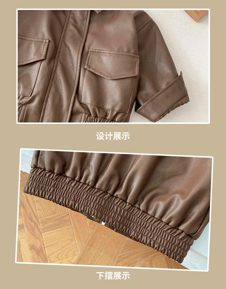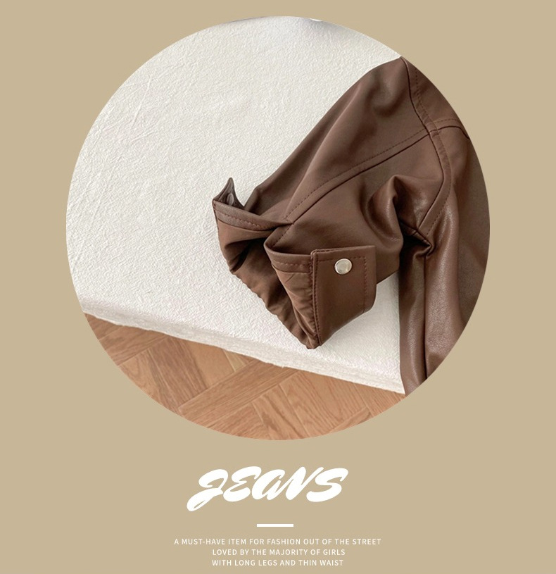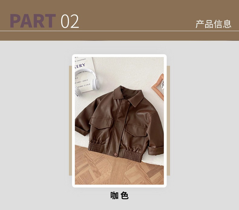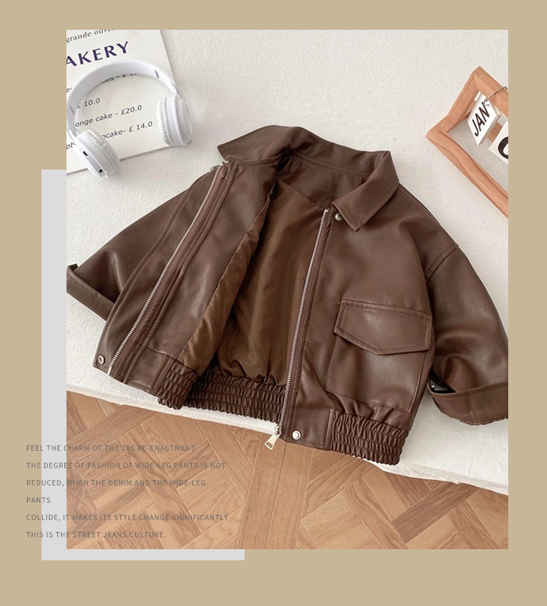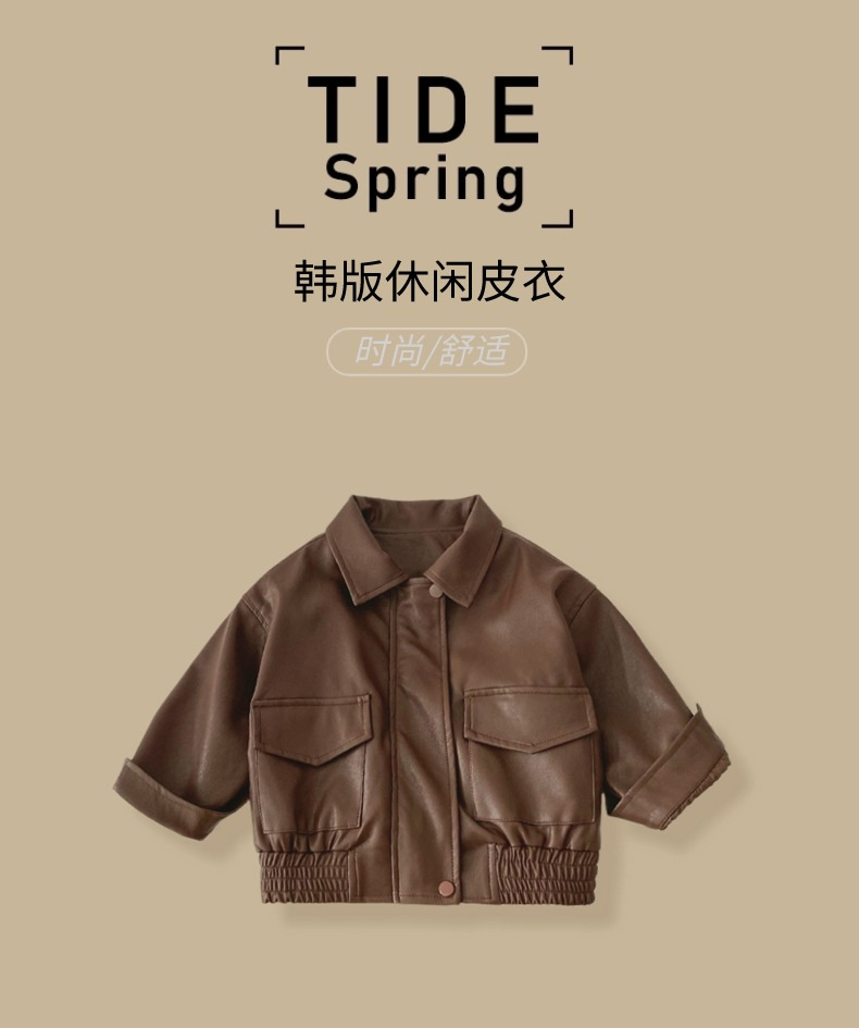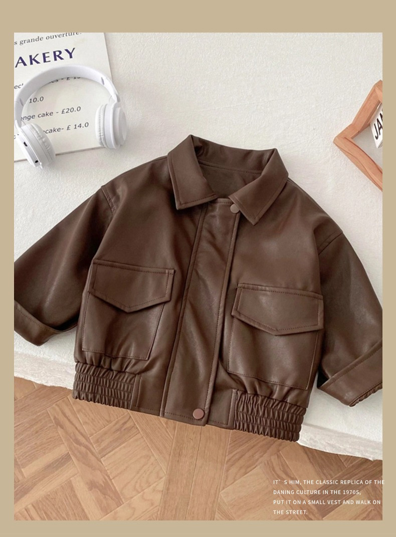 어린이 가죽 코트 2025 가을 새 소년 소녀 단색 옷깃 가죽 재킷 소년 아기 한국식 바이커 옷스토어 가기