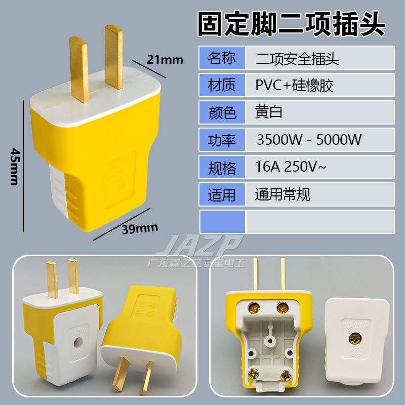 [10 팩] 철사 드롭 방지 구리 16A 고출력 포크 헤드가없는 두꺼운 순수 구리 플러그 두 다리스토어 가기