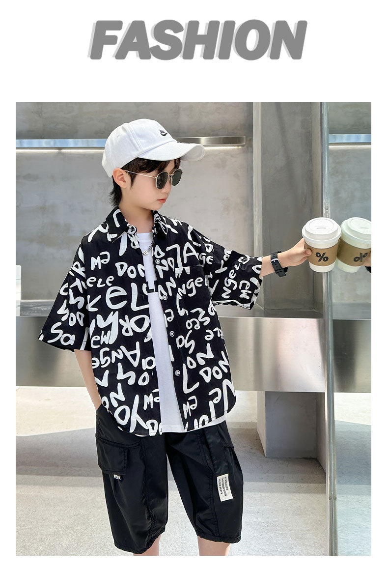 소년 반소매 티셔츠 여름 반소매 셔츠 어린이 2025 여름 새로운 유행 소년 잘 생긴 셔츠스토어 가기