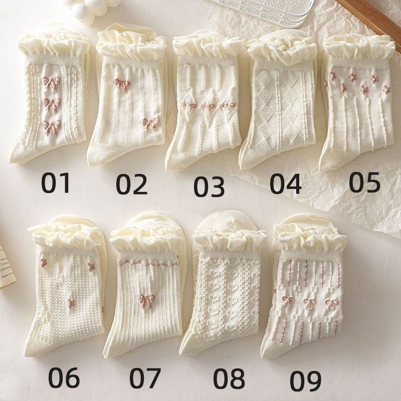 봄 여름을위한 여성 아이보리 양말 얇은 인기 온라인 인기 스타일 프린세스 링지 학교 스타일 꽃스토어 가기