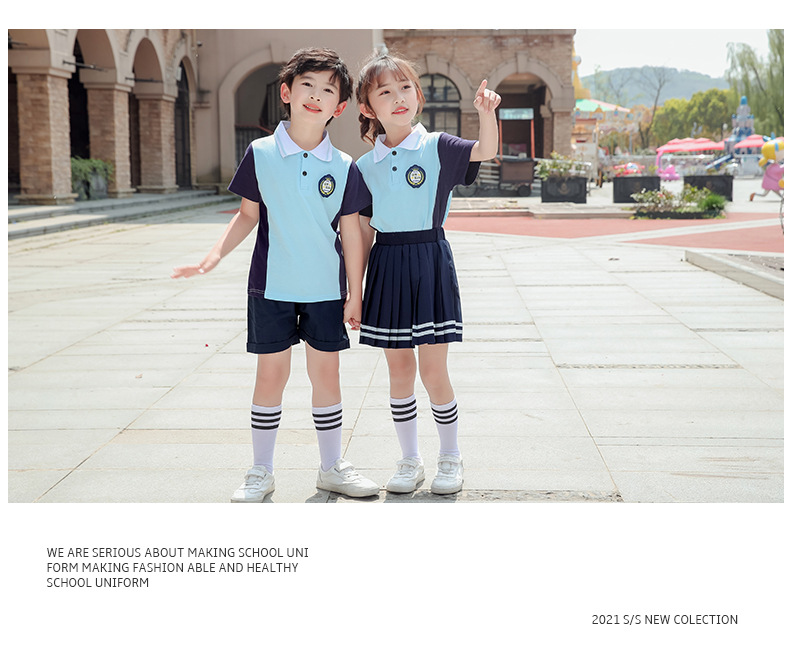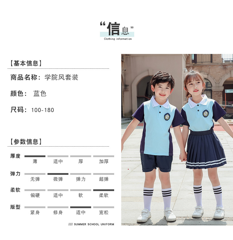 어린이 학교 교복 세트 새 초등학생 반팔 수업 옷 여름 옷 유치원 정원 옷 영국식 졸업 사진 공연스토어 가기