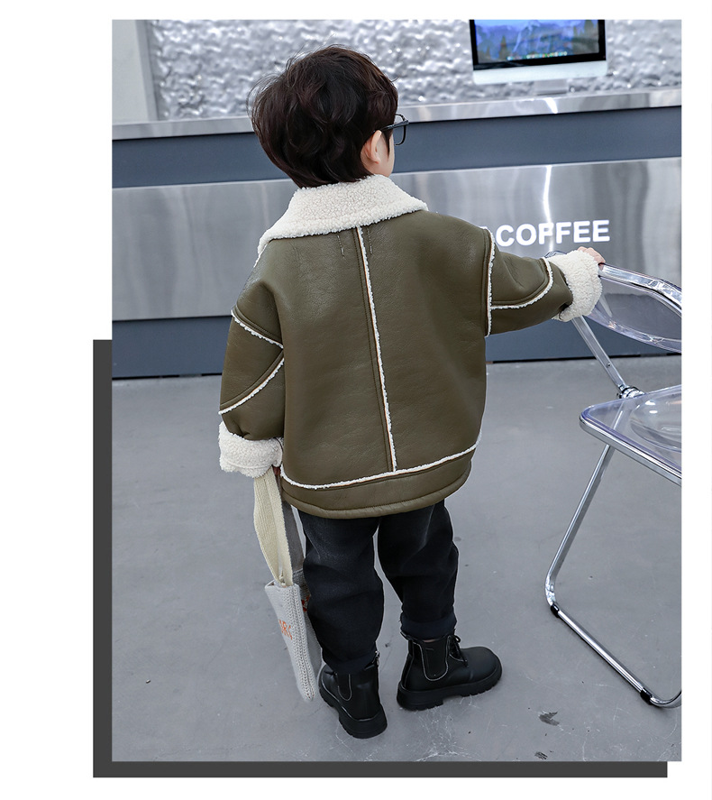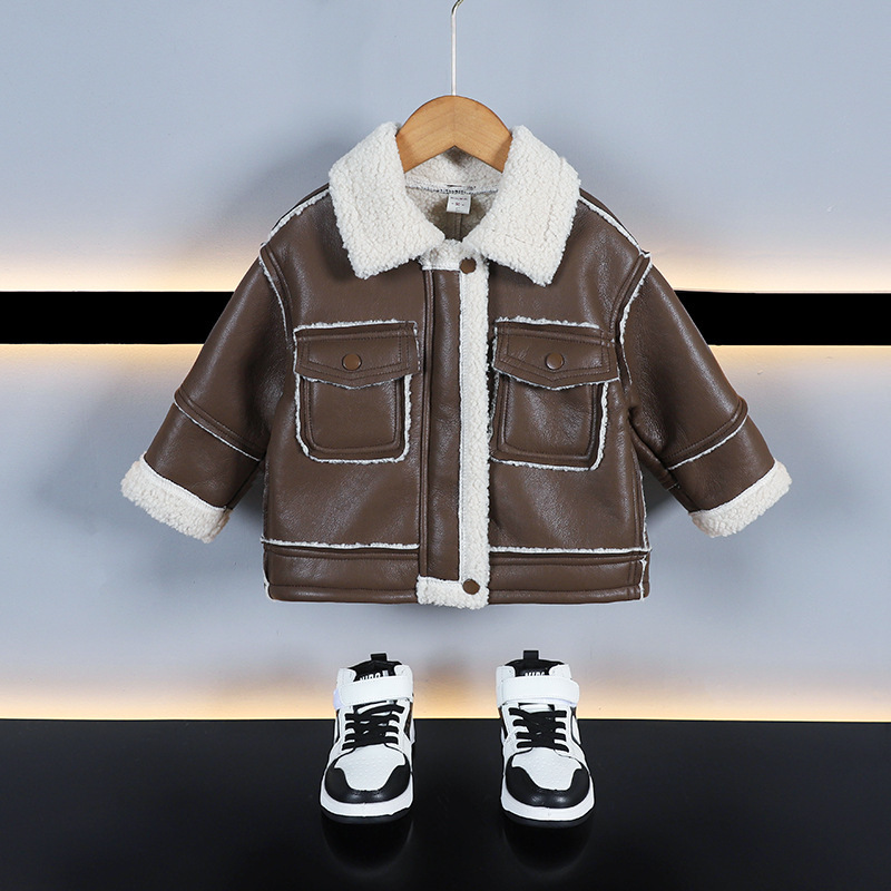 어린이 모피 코트 2025 가을과 겨울 새로운 아기 기모 두꺼운 겨울 옷 소년 서양식 면 옷 유행