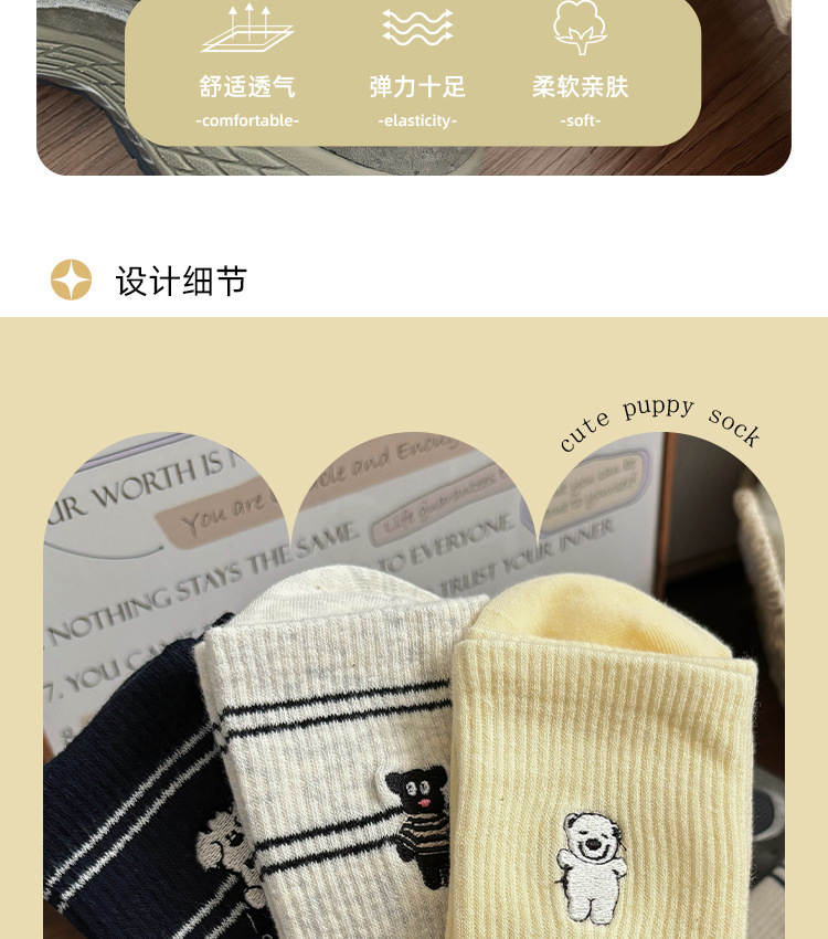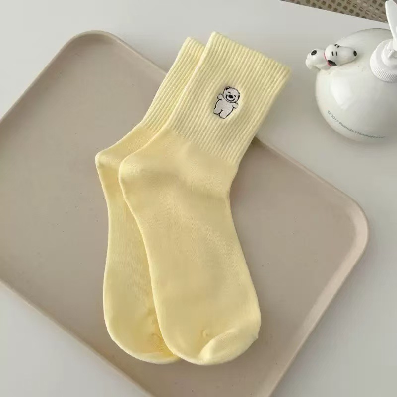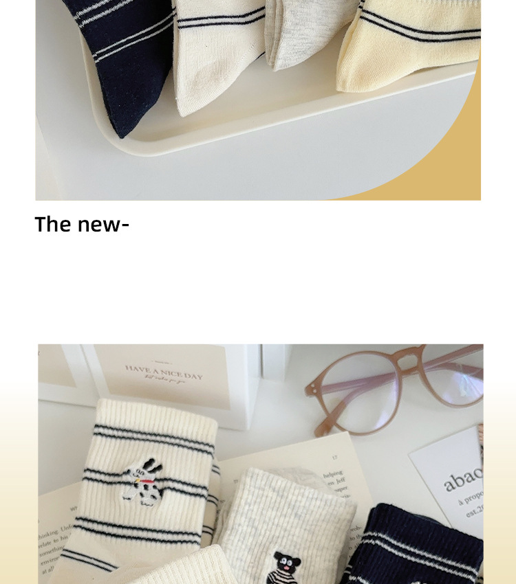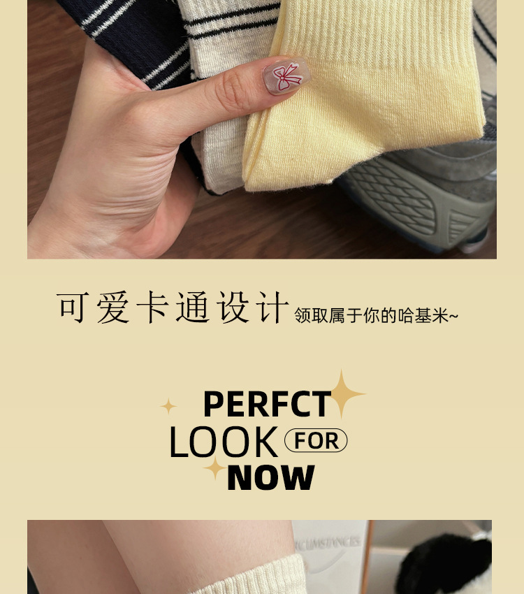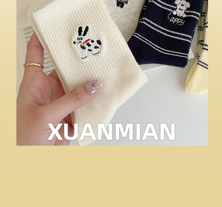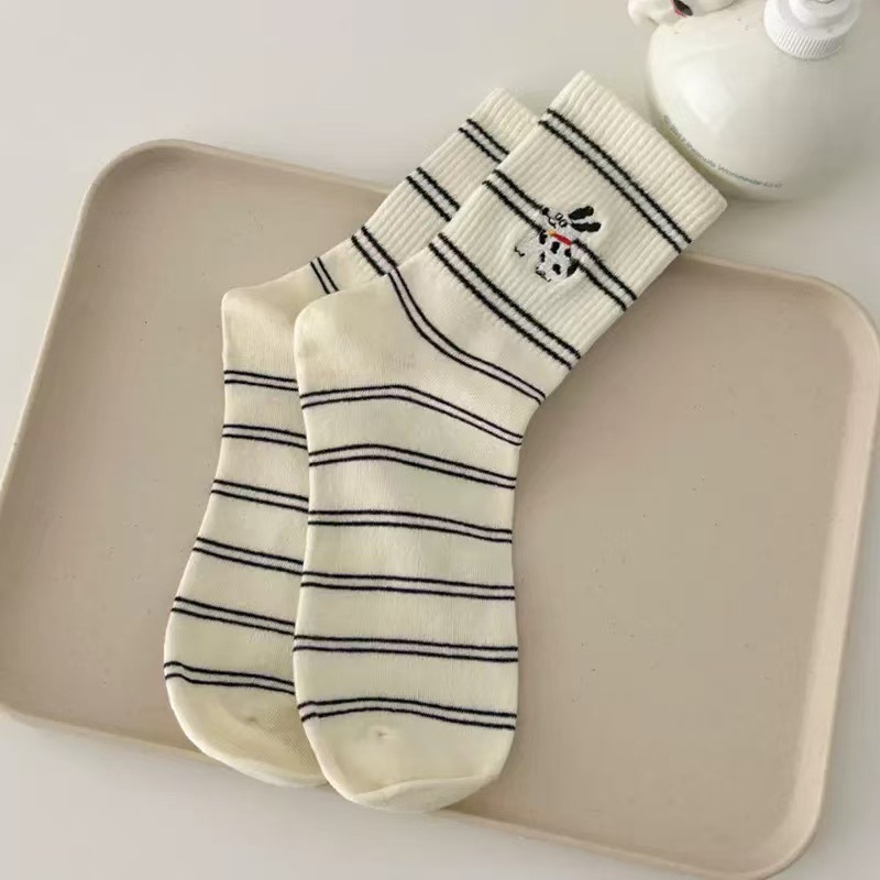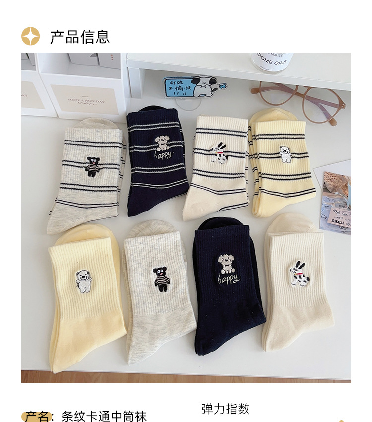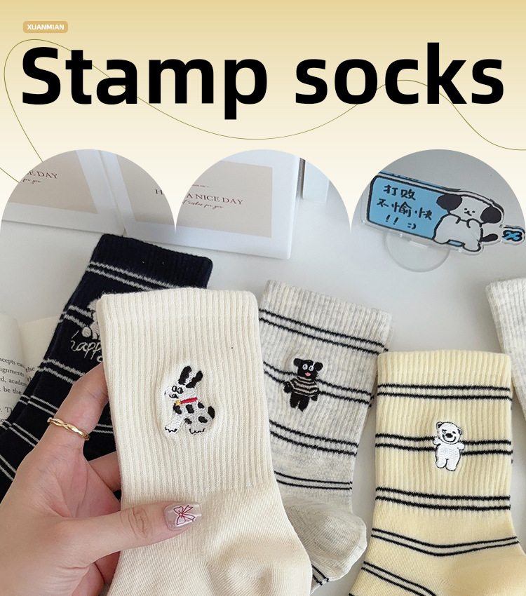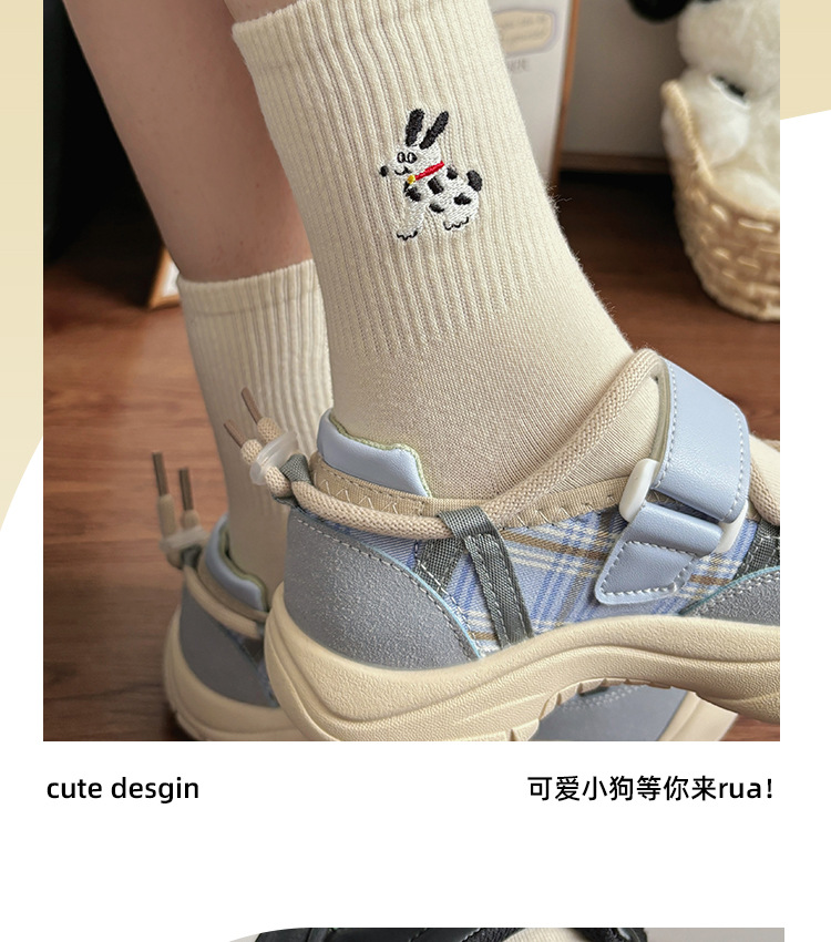 가을 만화 귀여운 개 자카드 조수 치유 중간 양말 내 한국 스타일 대학 스타일 더미 양말