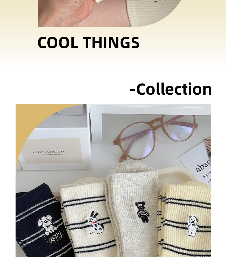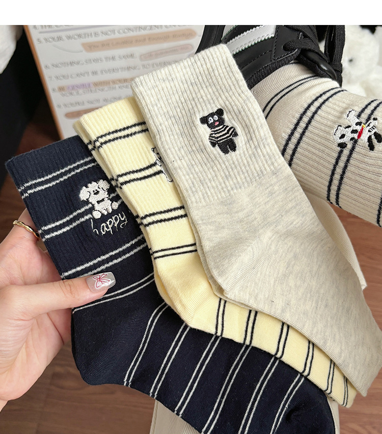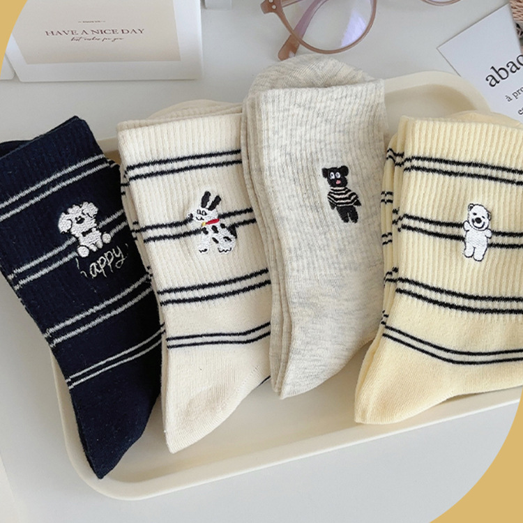 가을 만화 귀여운 개 자카드 조수 치유 중간 양말 내 한국 스타일 대학 스타일 더미 양말스토어 가기