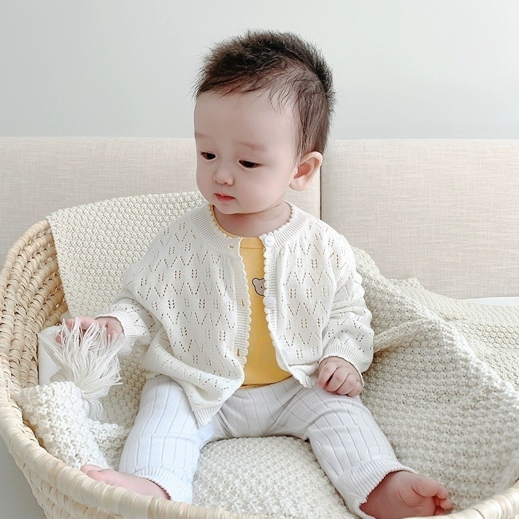 어린이 카디건 얇은 여름 아기 에어컨 셔츠 아기의 샤넬 스타일 코트 어린이 할로우 통기성 태양 보호 의류