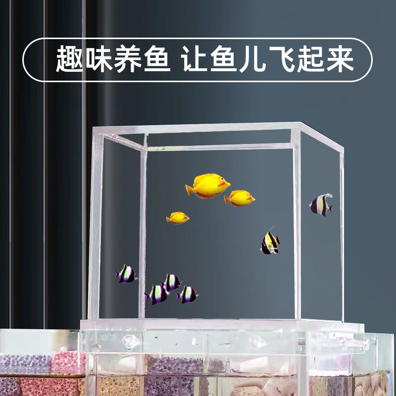 거실 작은 창조적 인 데스크탑 미니 수족관의 전체 세트 아크릴 부정적인 압력 탱크 버킷 물고기 탱크 조경 장식스토어 가기