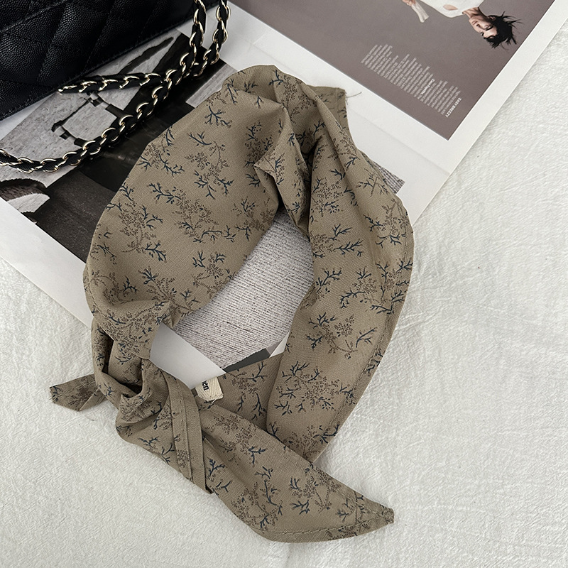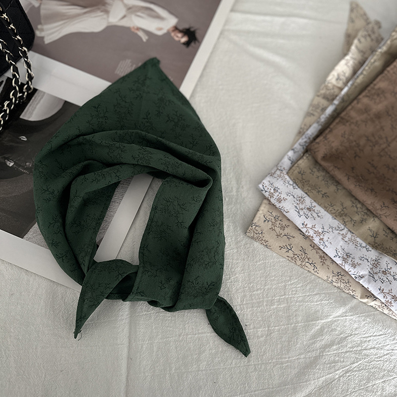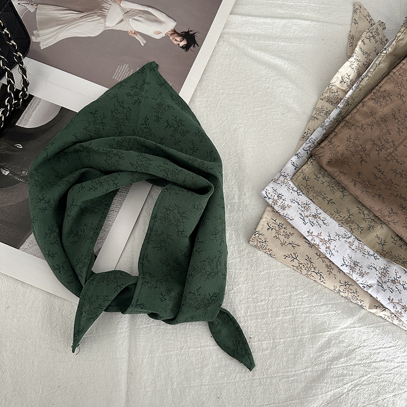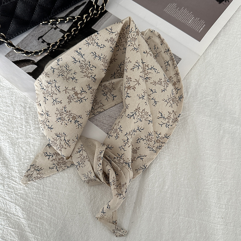 일본과 한국 스타일 달콤한 새면 및 리넨 삼각형 스카프 여성의 얇은 작은 꽃 장식 목 보호 작은 스카프 묶인 머리 스카프스토어 가기