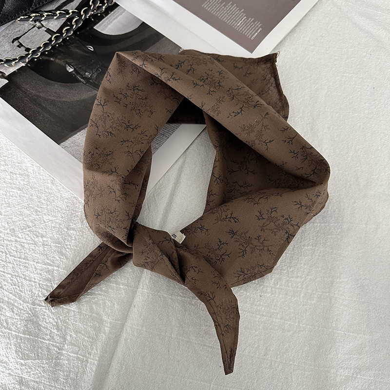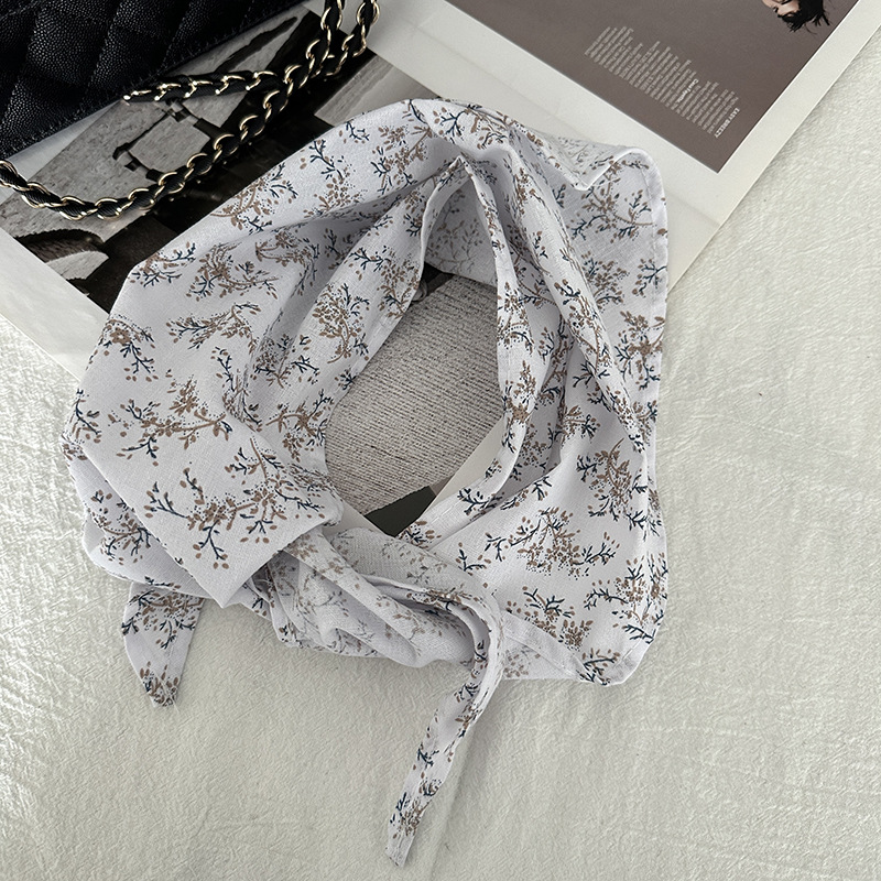 일본과 한국 스타일 달콤한 새면 및 리넨 삼각형 스카프 여성의 얇은 작은 꽃 장식 목 보호 작은 스카프 묶인 머리 스카프