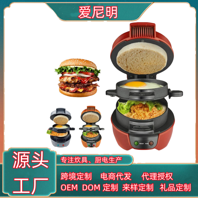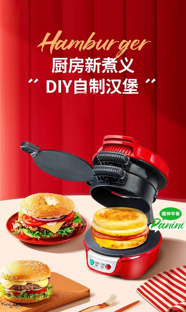 국경 110V 유럽 게이지 다기능 햄버거 기계 튀긴 계란 스테이크 기계 샌드위치 아침 식사 기계 버거 메이커스토어 가기