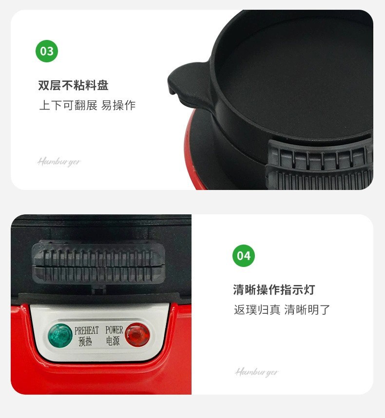 국경 110V 유럽 게이지 다기능 햄버거 기계 튀긴 계란 스테이크 기계 샌드위치 아침 식사 기계 버거 메이커
