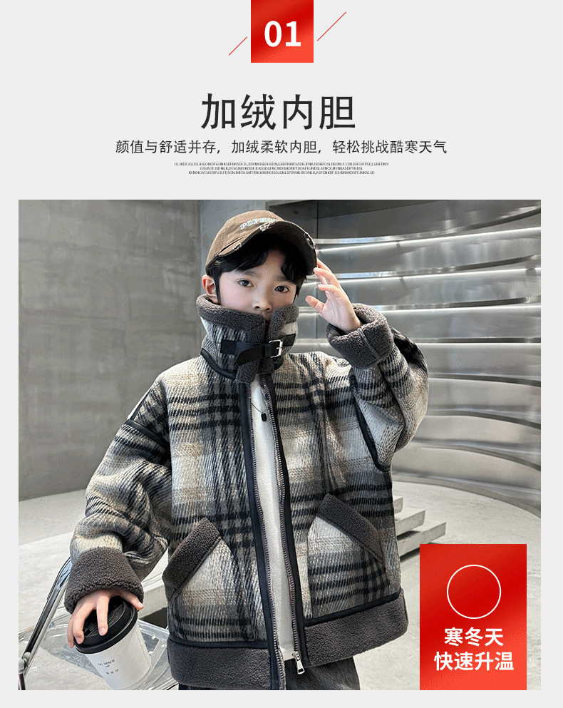 아동복 소년 기모 울 코트 2025 겨울 새 스타일 중대형 소년 캐주얼 핸섬 따뜻한 탑 트렌디스토어 가기