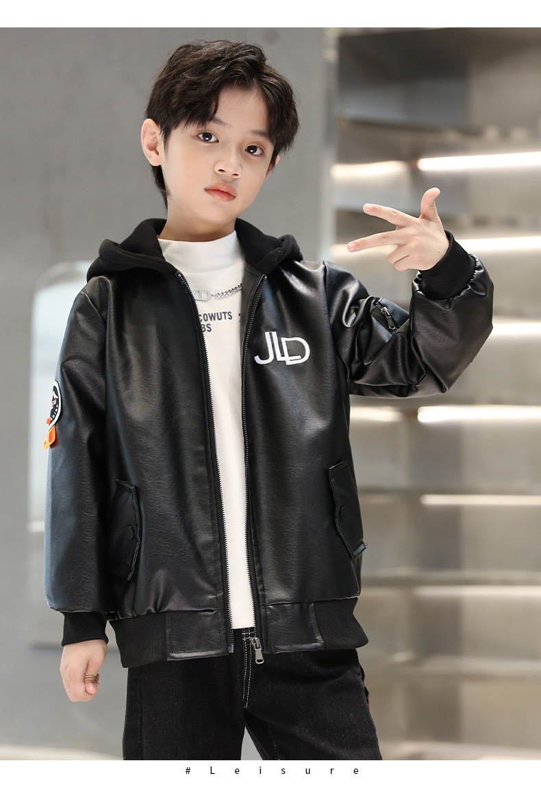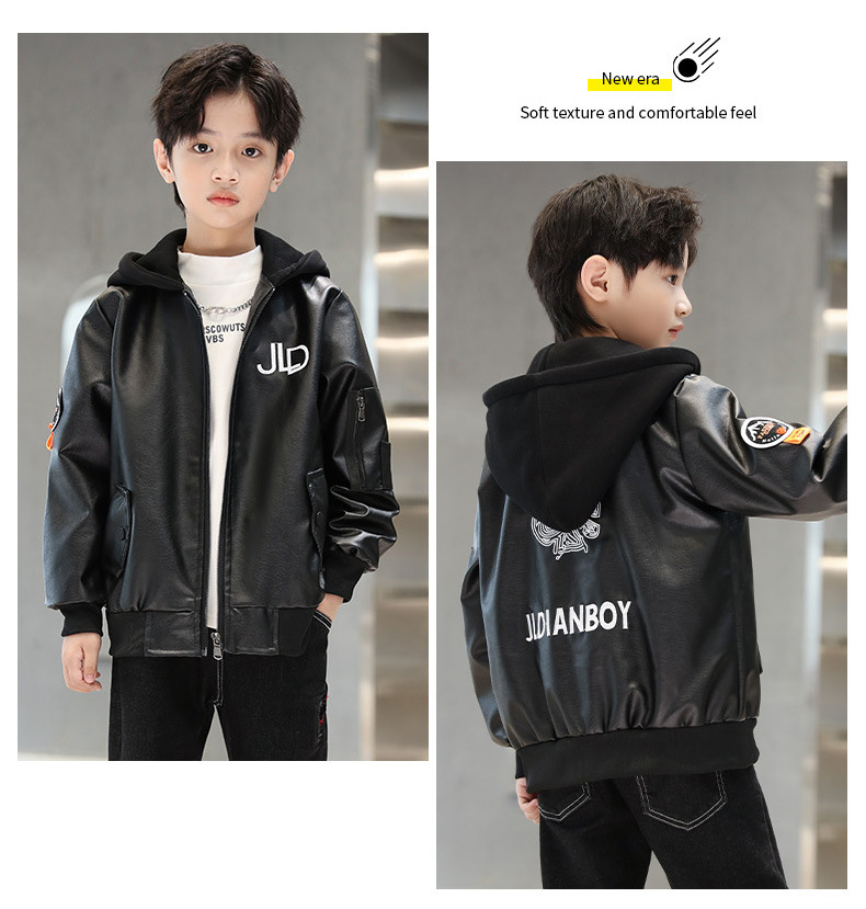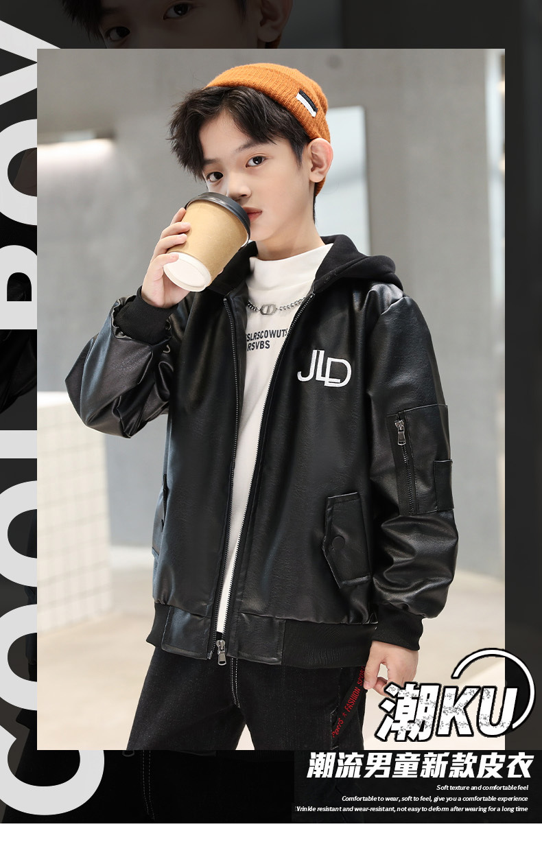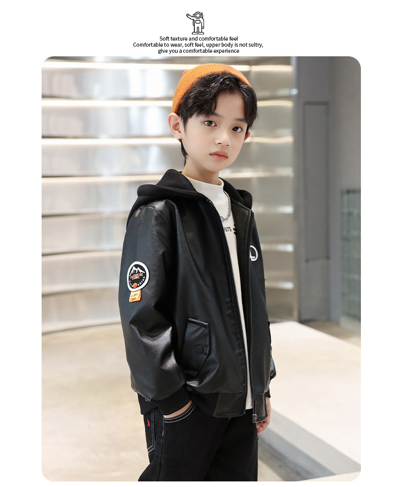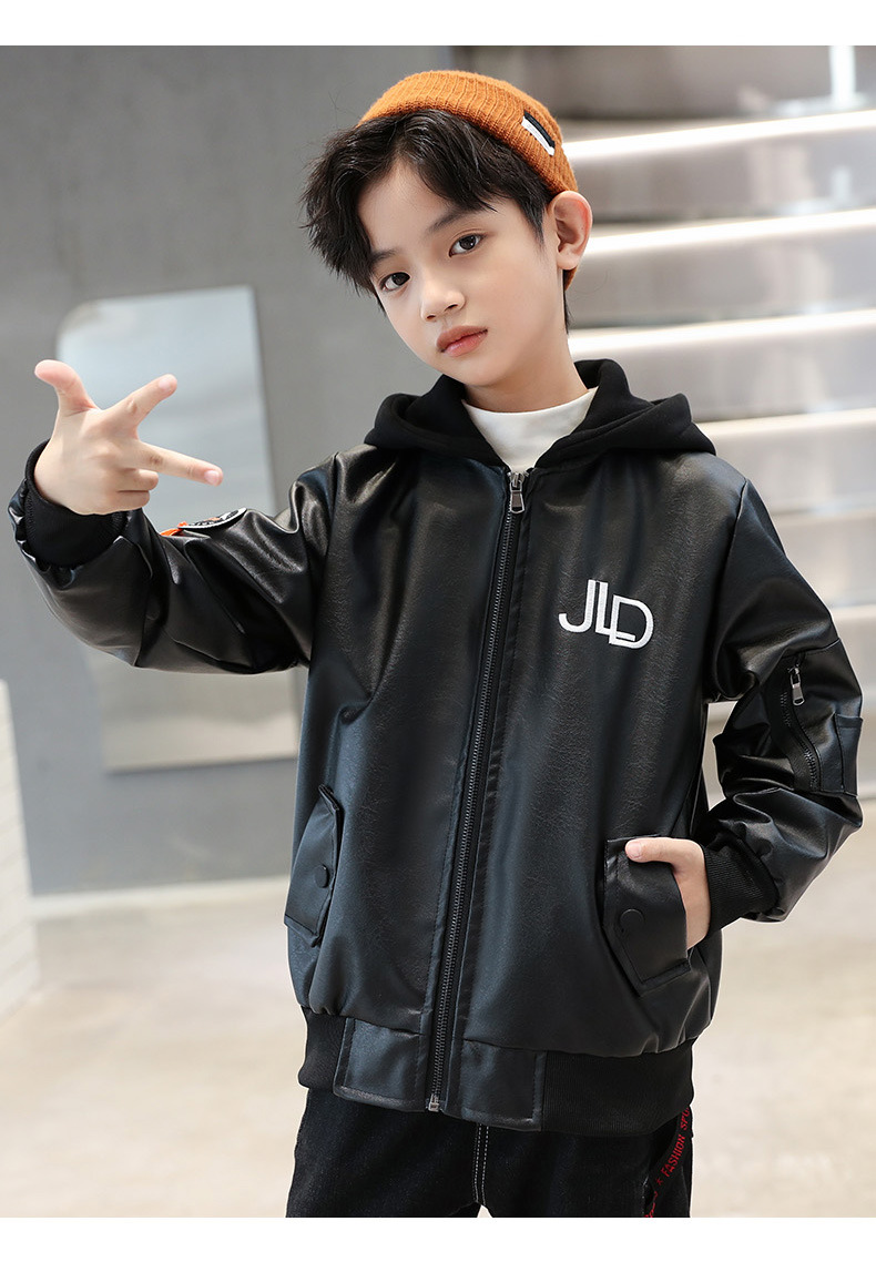 소년 가죽 자켓 2025 새로운 중대형 어린이 봄과 가을 자전거 의류 소년 잘 생긴 가죽 자켓 후드 코트 트렌디스토어 가기